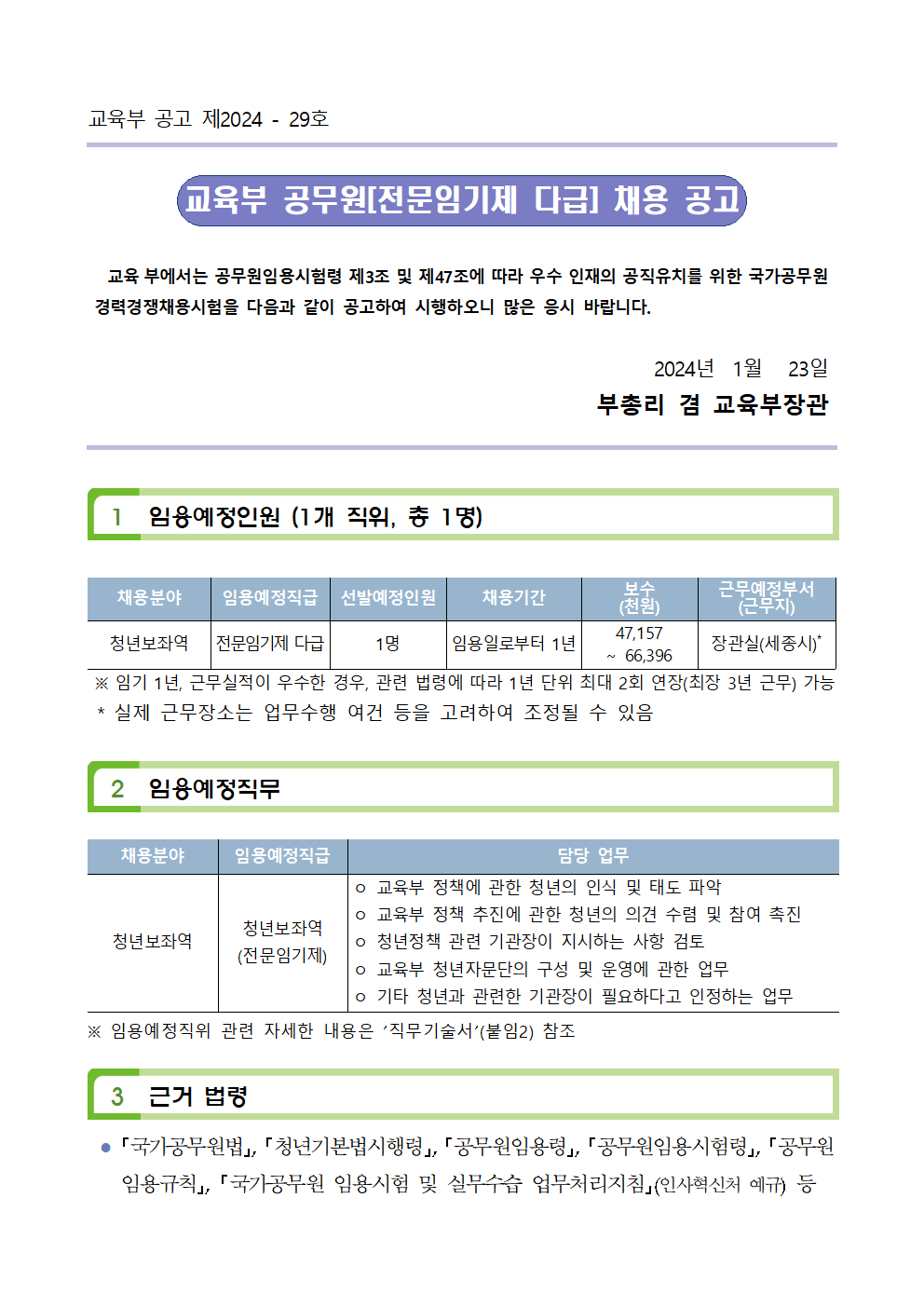 교육부 전문임기제 다급(청년보좌역) 공무원 채용 공고문.hwp