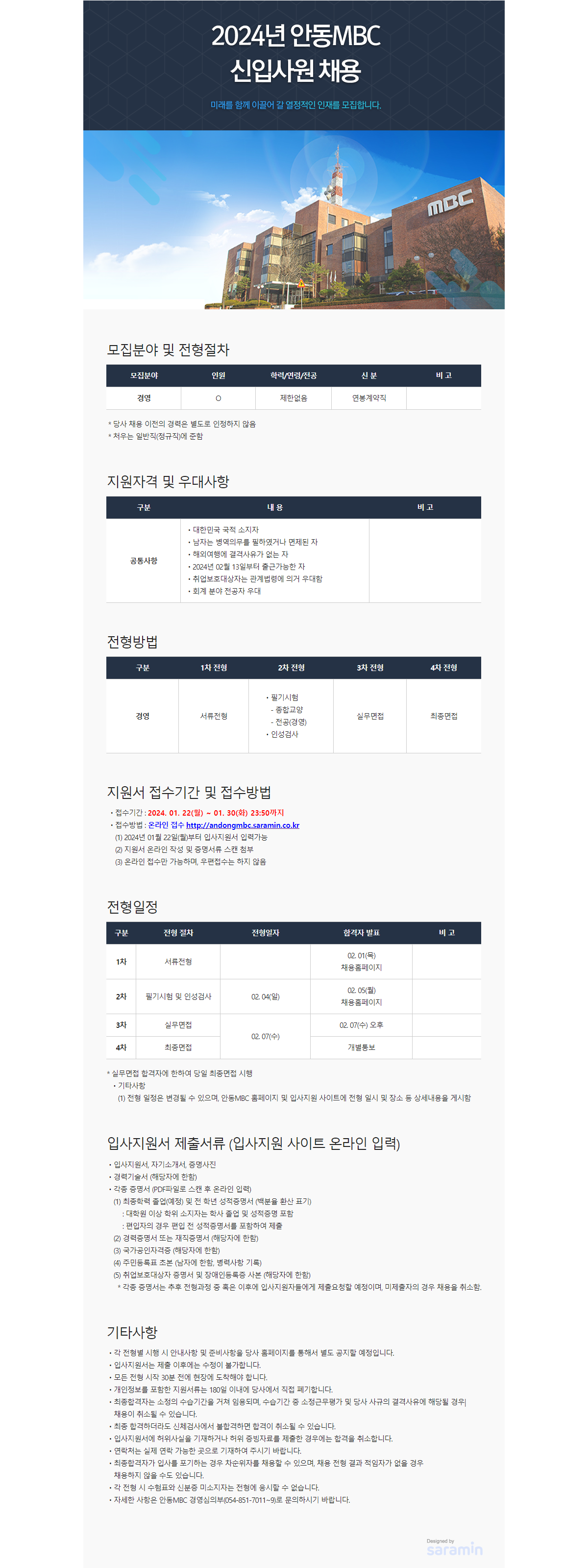 [안동MBC] 2024년 신입사원 채용 공고