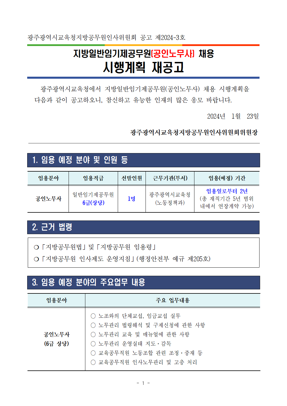 1. 광주광역시교육청 지방일반임기제공무원(공인노무사) 채용 시행계획 공고문.hwp
