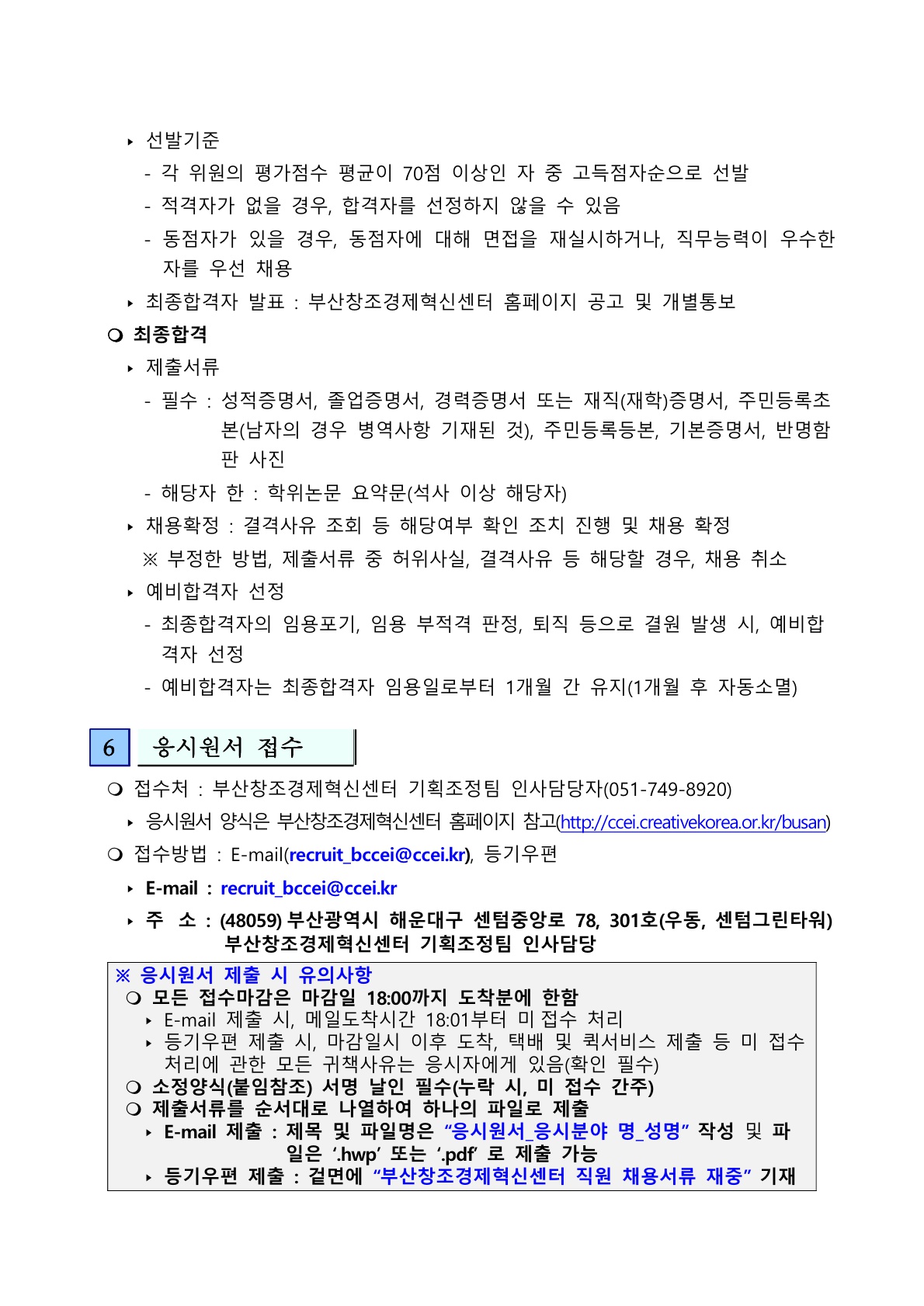 [(재)부산창조경제혁신센터] 직원 채용 재공고