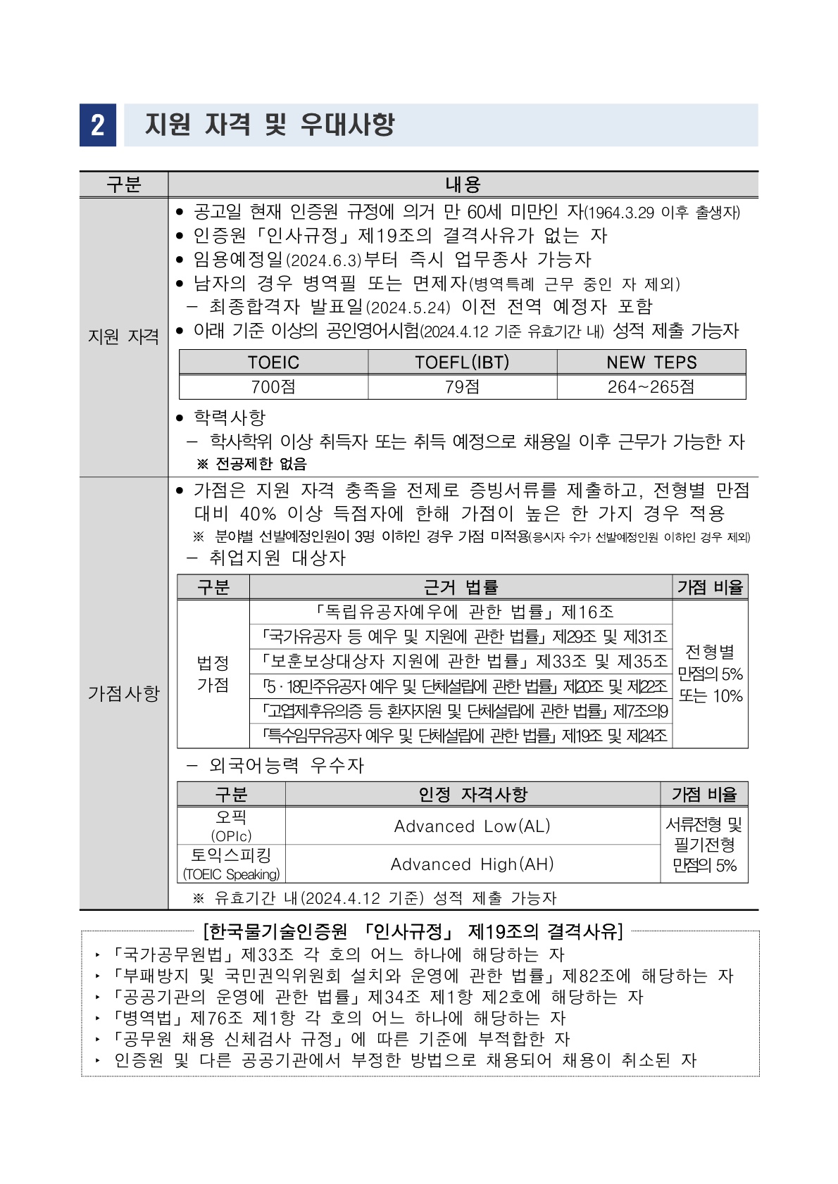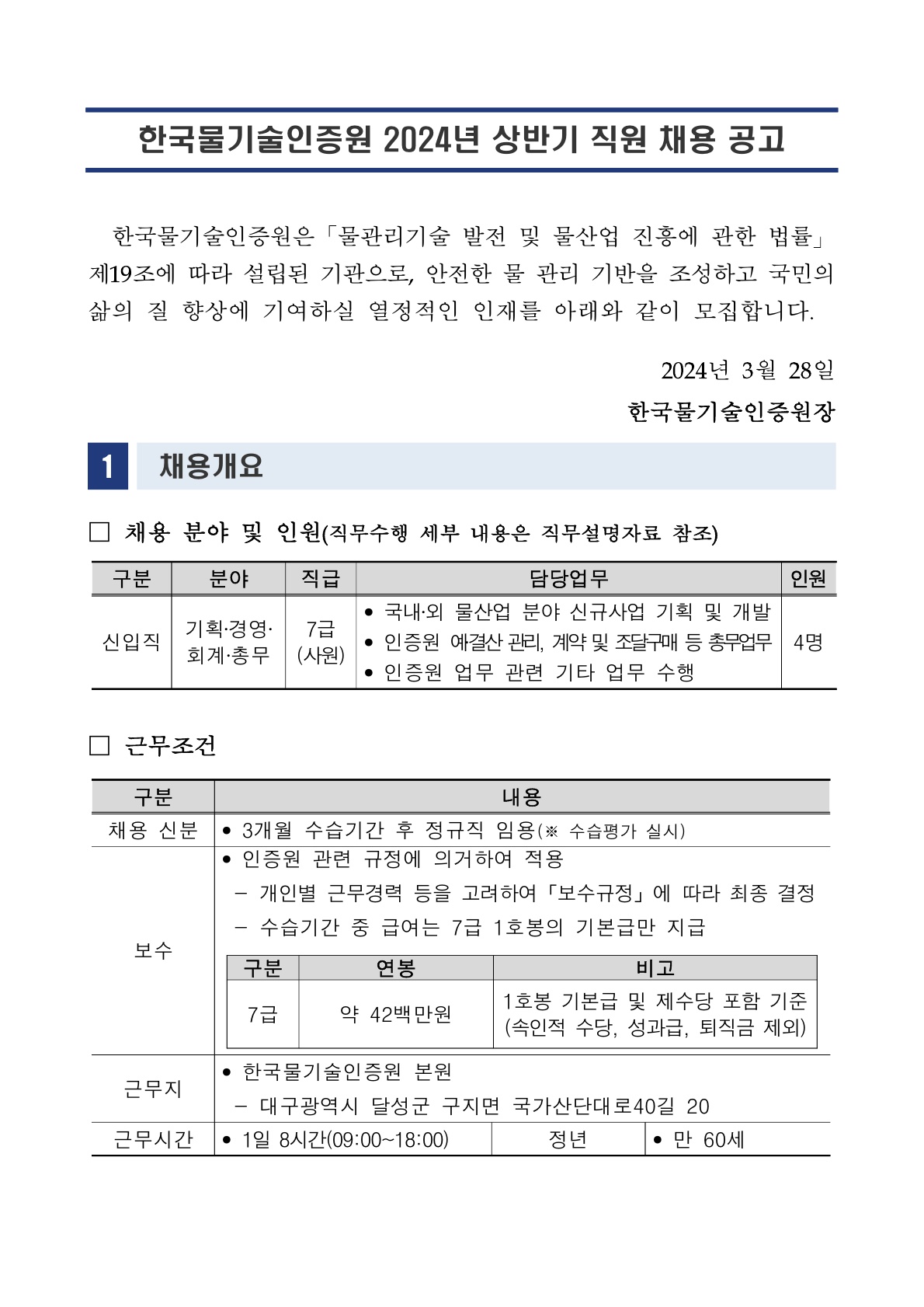 [한국물기술인증원] 2024년 상반기 직원 채용 공고