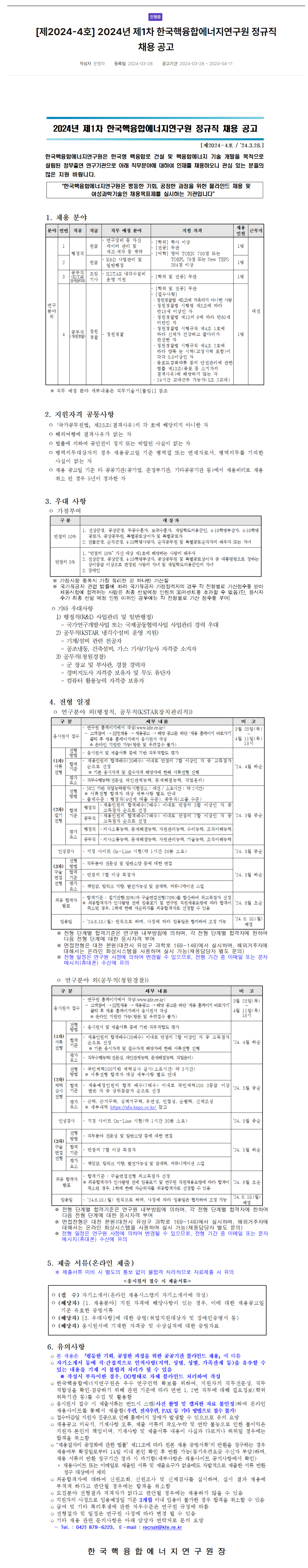 [한국핵융합에너지연구원] 2024년 제1차 정규직 채용 공고