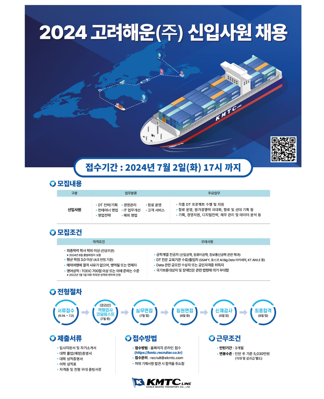 [고려해운] 2024년 고려해운(주) 신입사원 공개채용