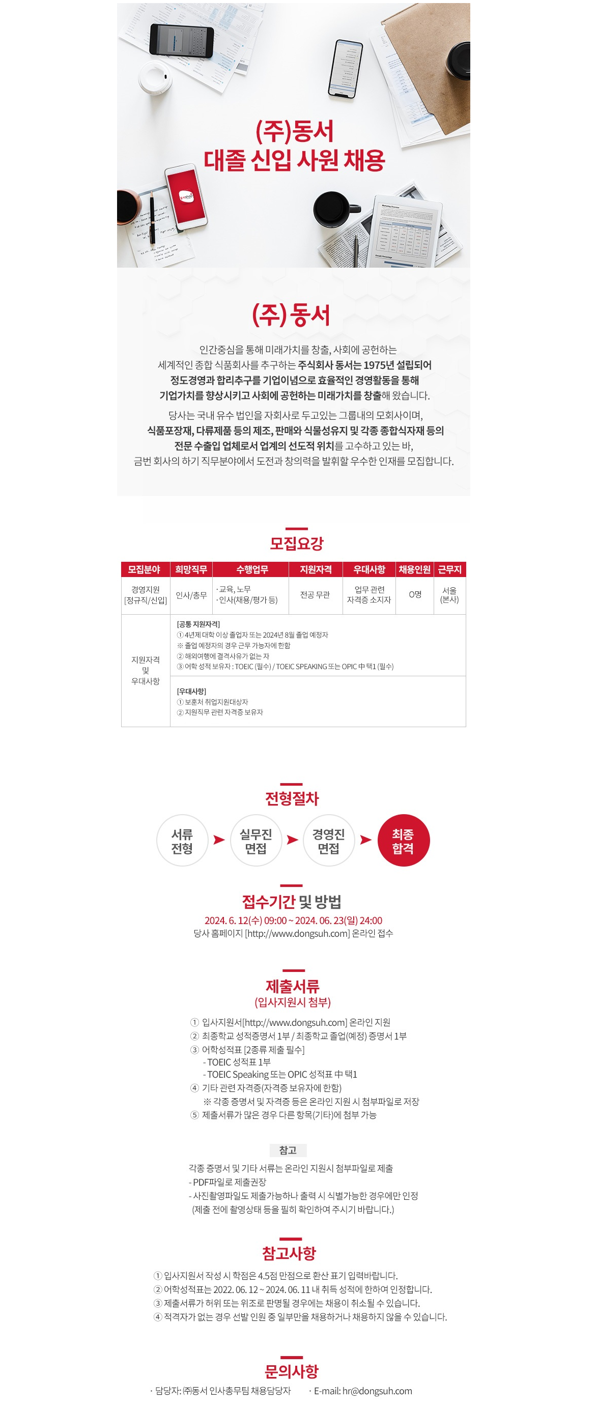 [동원홈푸드] 인턴조리사, 인턴영양사 채용연계형 채용