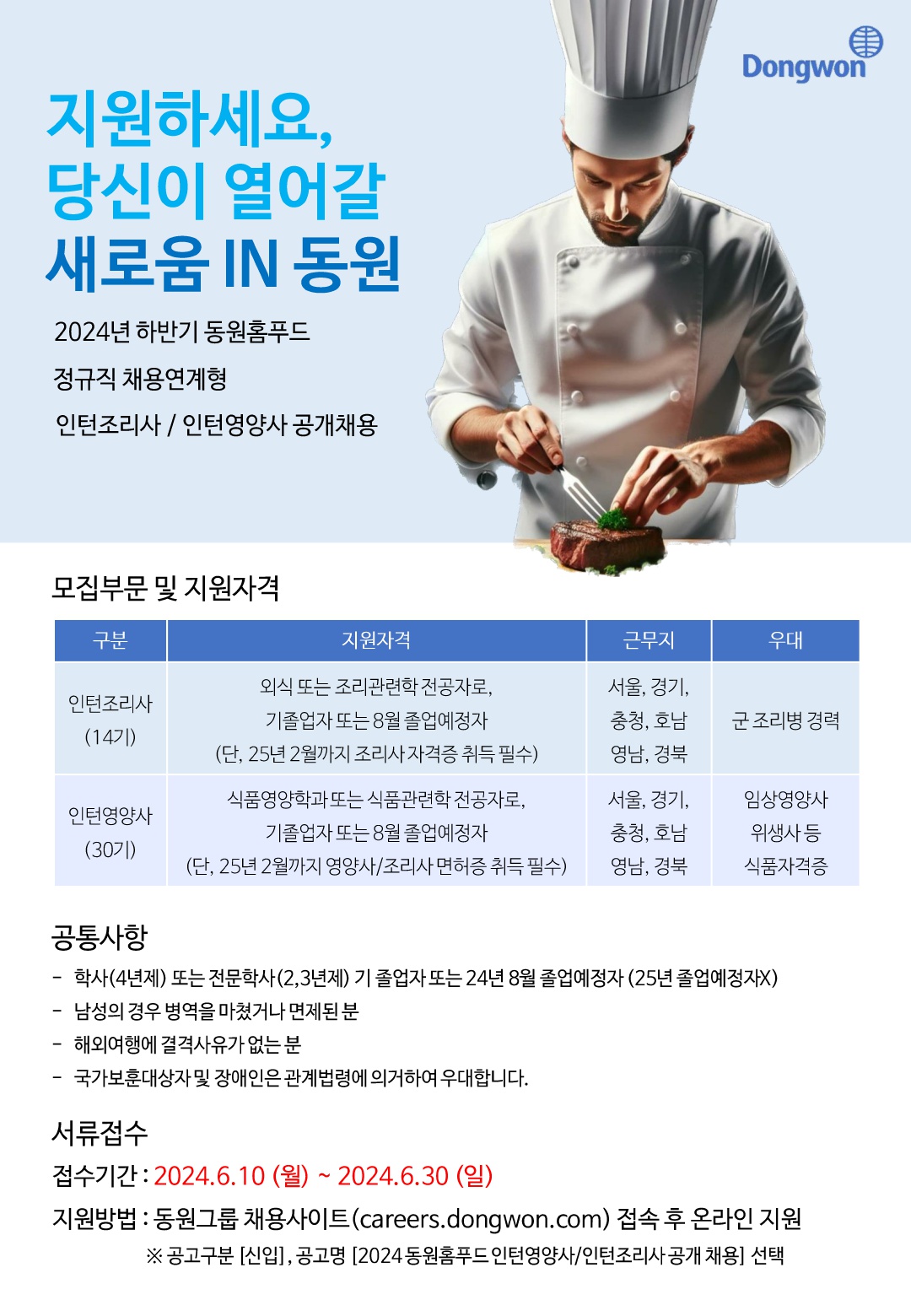 서류제출 : ~24.6.30 (동원그룹 채용 (dongwon.com))