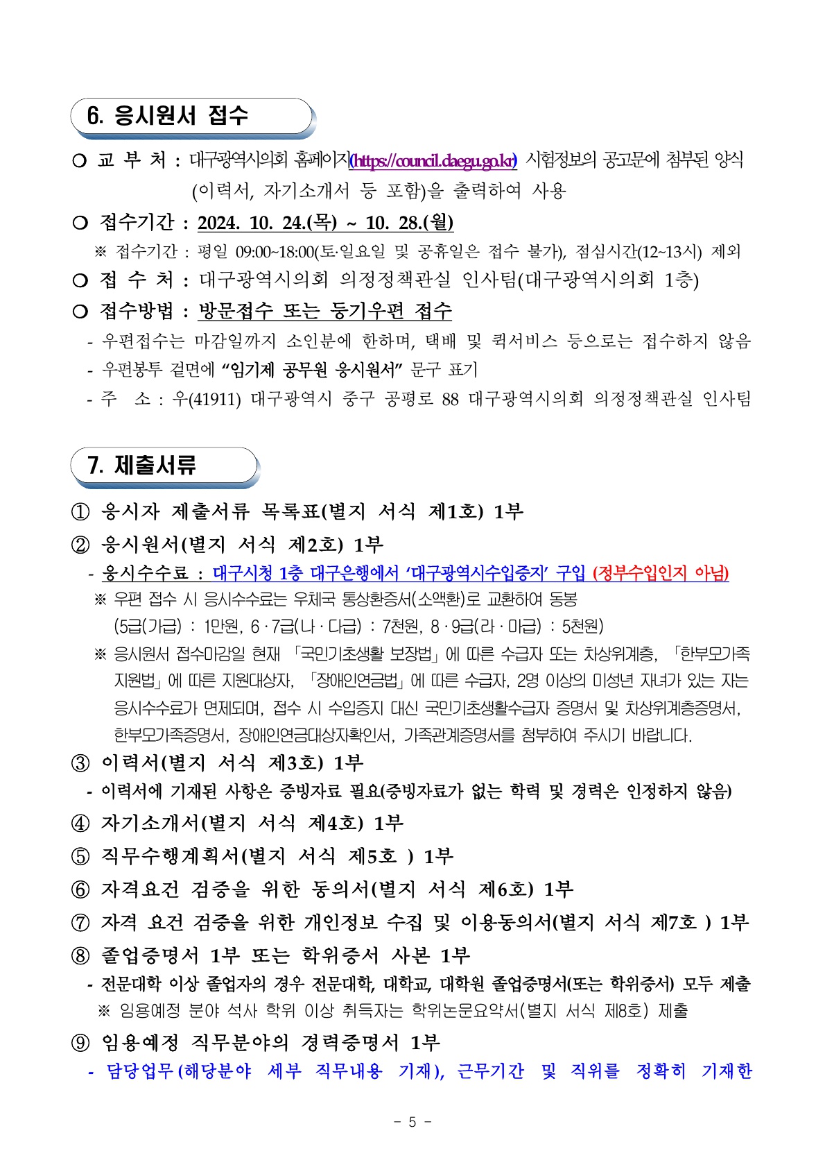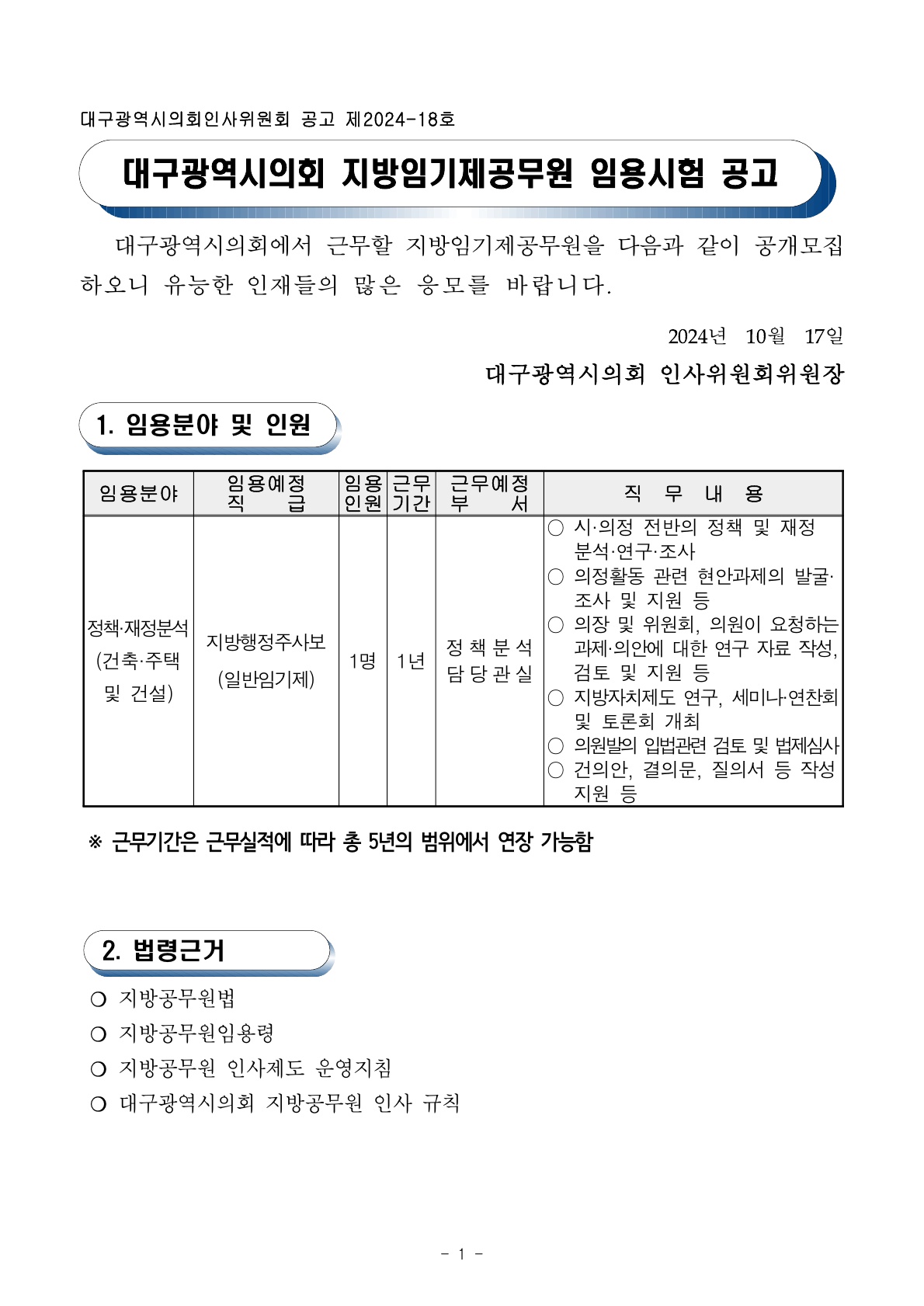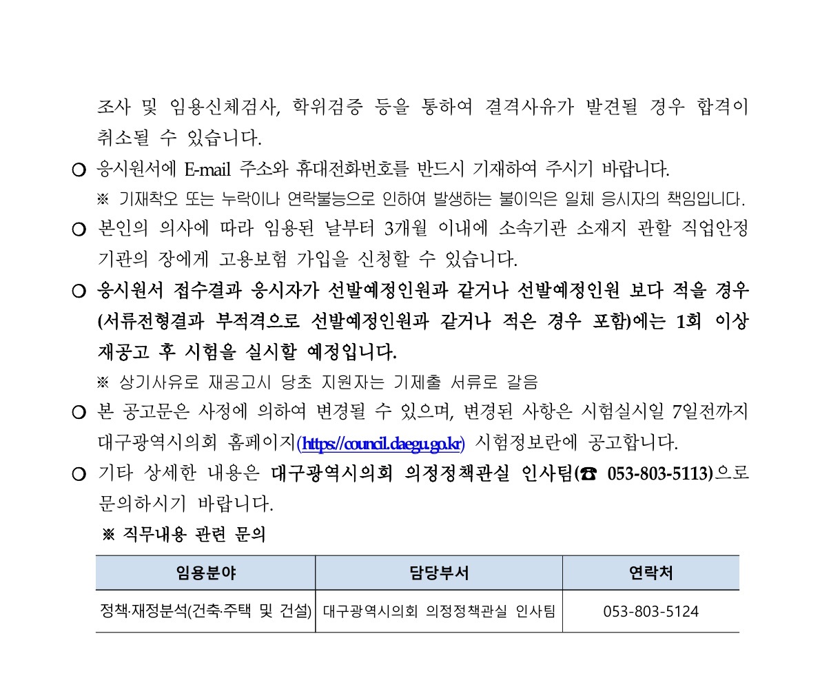 [대구광역시의회] 지방임기제공무원 임용시험 공고