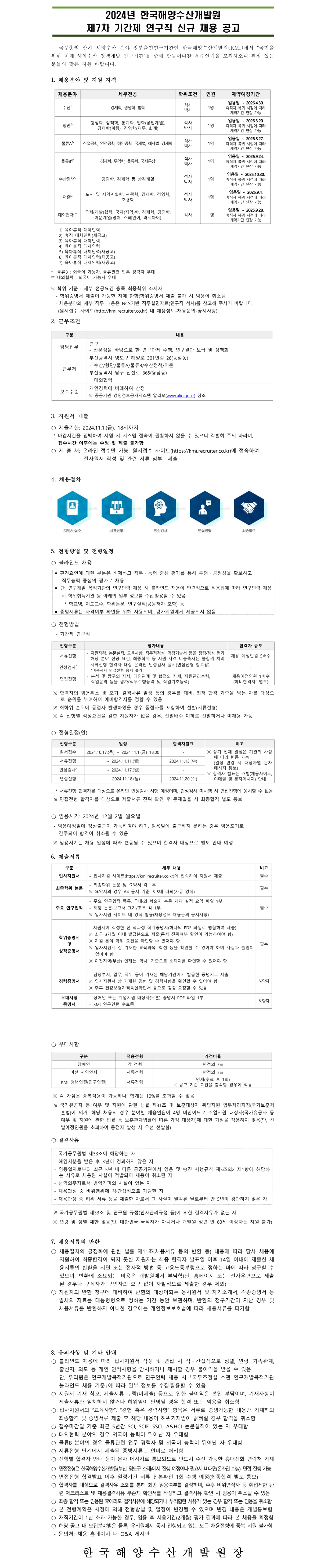 [한국해양수산개발원] 2024년 한국해양수산개발원 제7차 기간제 연구직 신규 채용 (석박사)