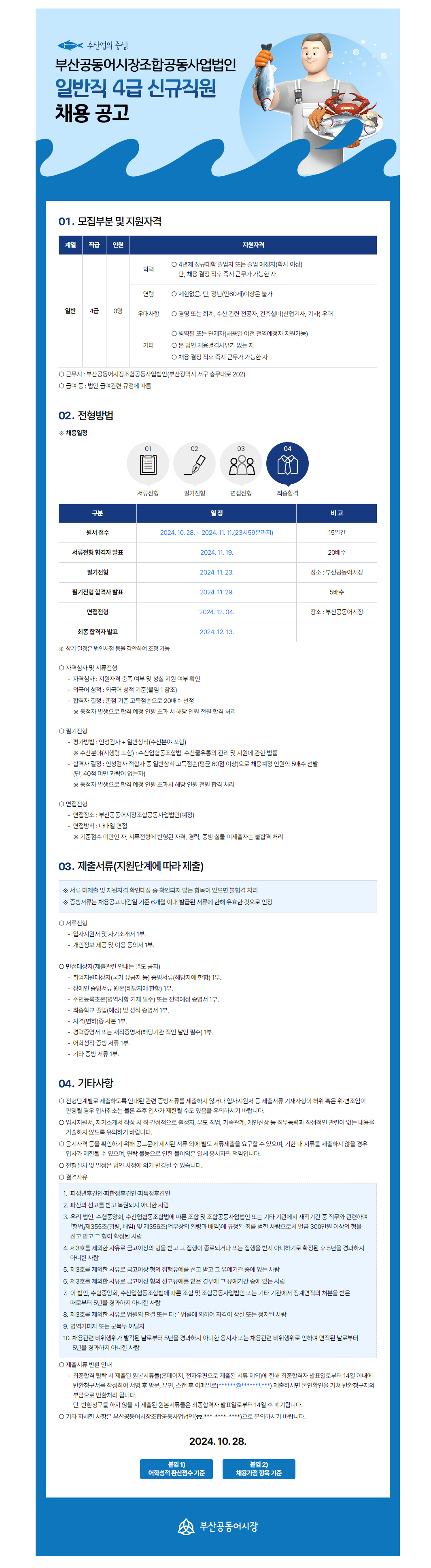 [부산공동어시장] 일반직 4급 신규직원 채용 공고