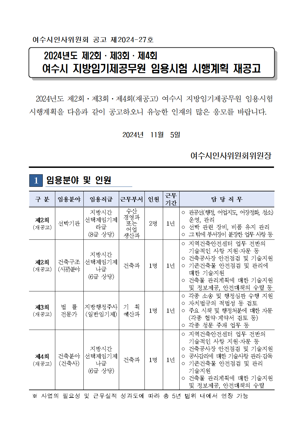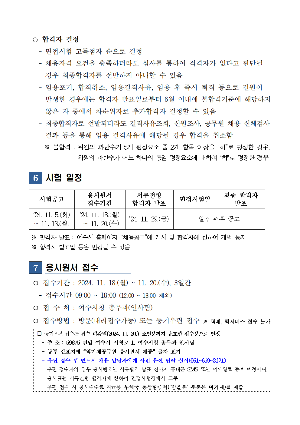 [여수시] 2024년도 제2회·제3회·제4회 여수시 지방임기제공무원 임용시험 시행계획 재공고