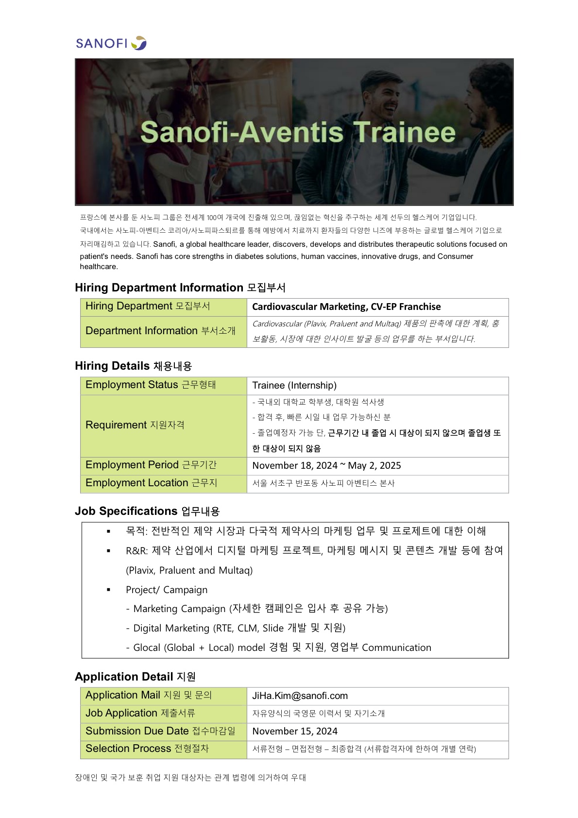 [Sanofi/사노피] Cardiovascular Marketing 인턴 공고