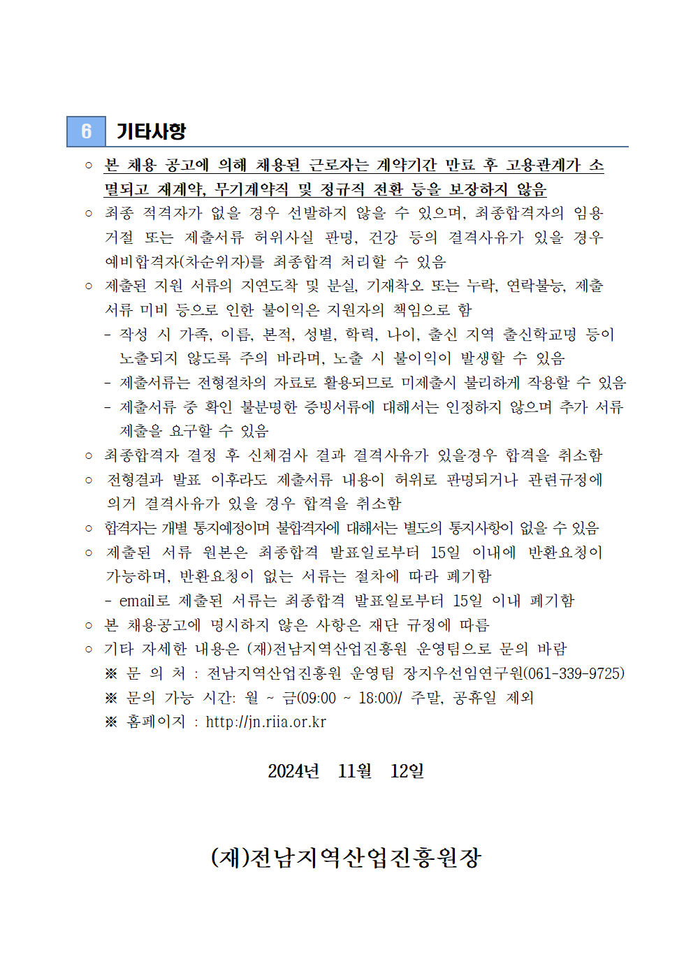 [(재)전남지역산업진흥원] 2024년도 제1차 신규직원(계약직) 공개채용