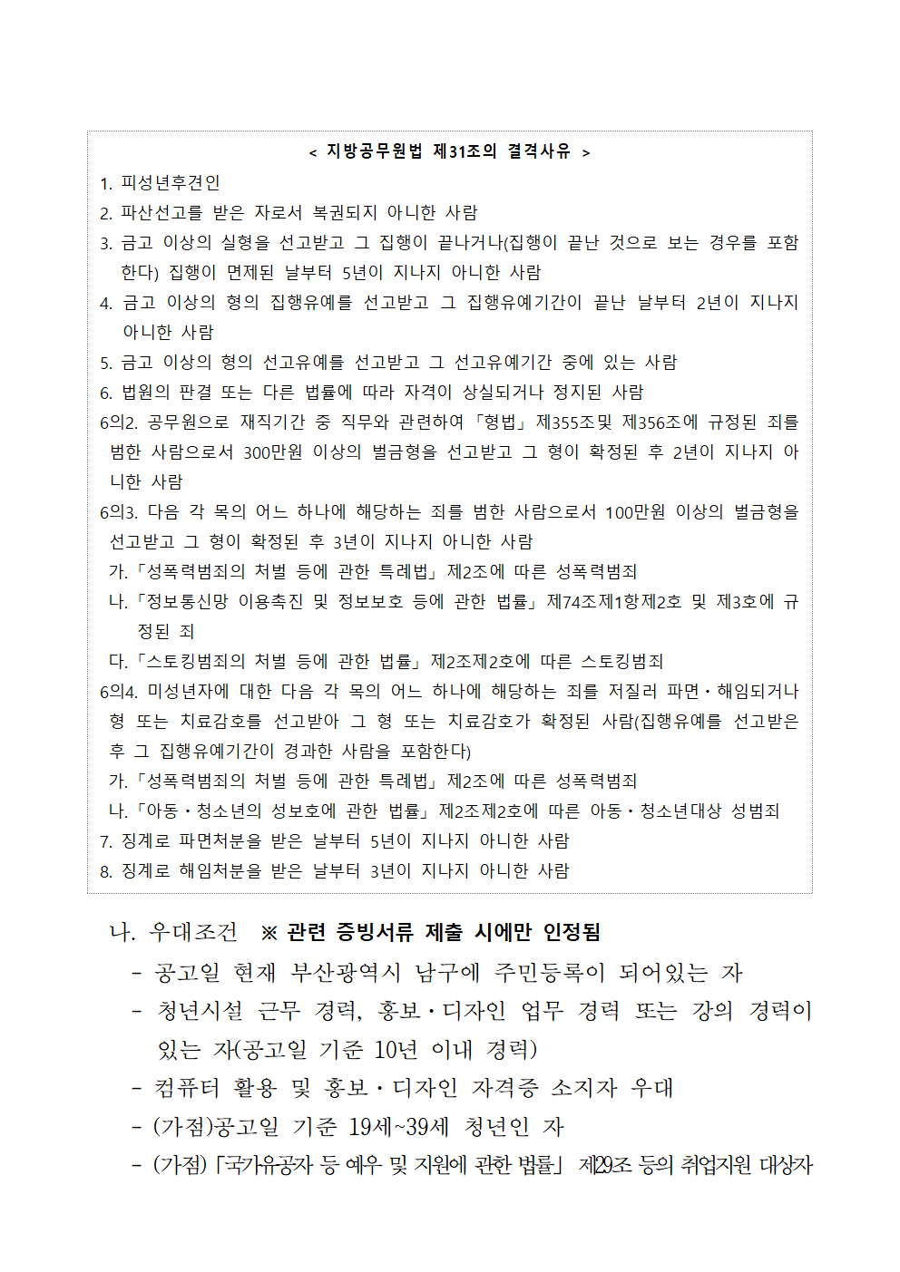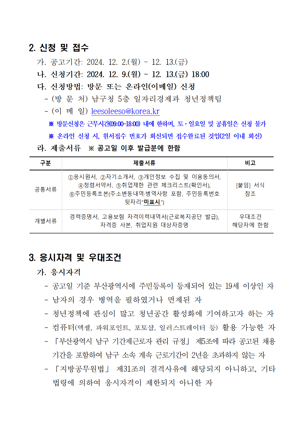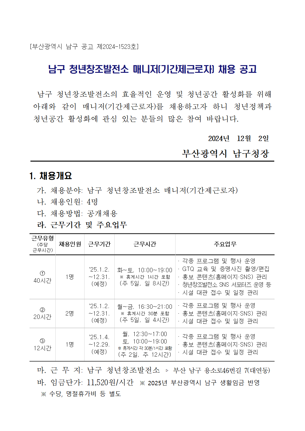[부산광역시 남구] 남구 청년창조발전소 매니저(기간제근로자) 채용 공고
