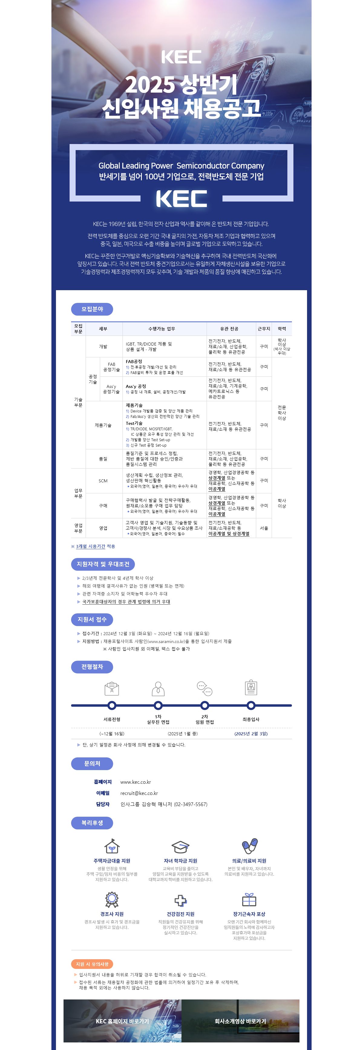 3) 채용홈페이지 : https://kec.saramin.co.kr/main/index