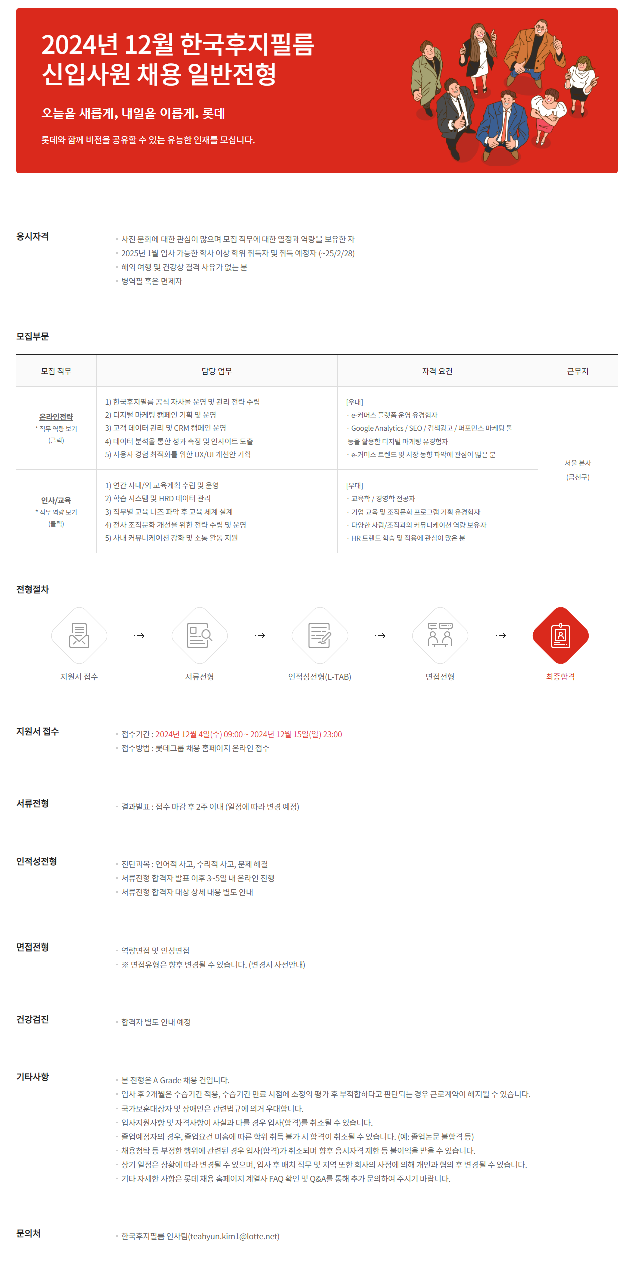 [한국후지필름] 2024년 12월 한국후지필름 신입사원 채용
