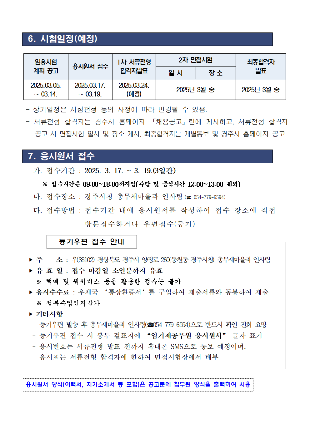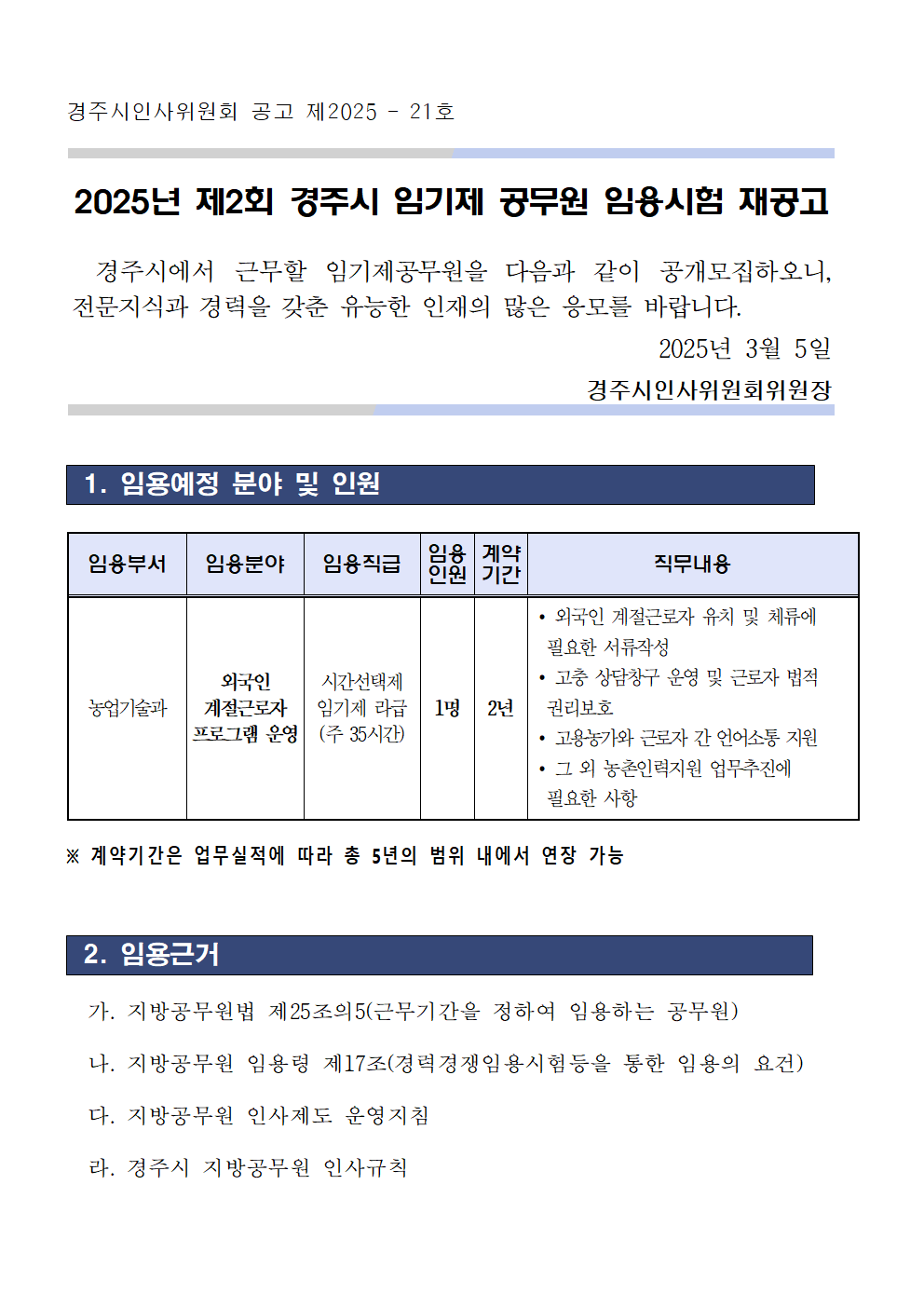 [경주시] 2025년 제2회 경주시 임기제 공무원 임용시험 재공고