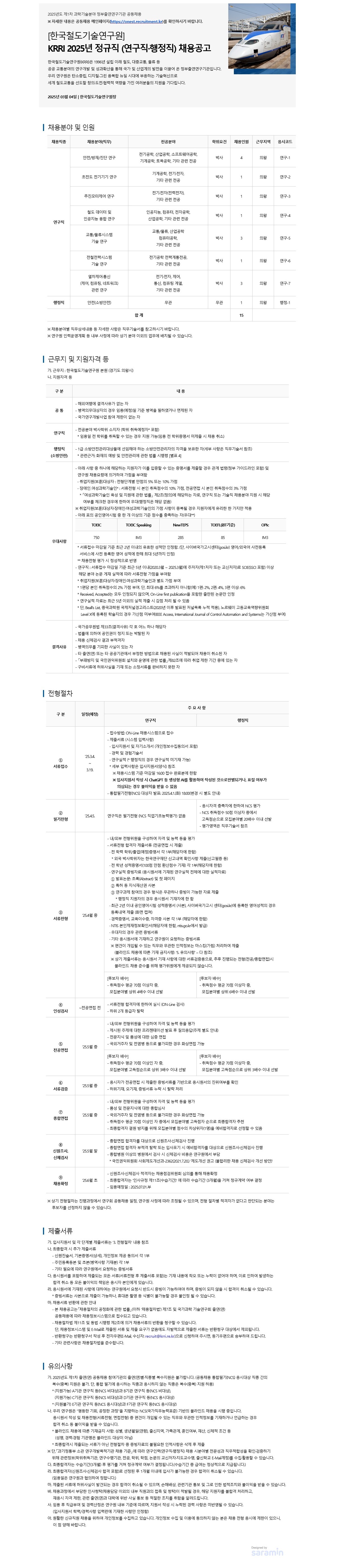 [한국철도기술연구원] 2025년 정규직 채용 (2025년 1차 공동채용)