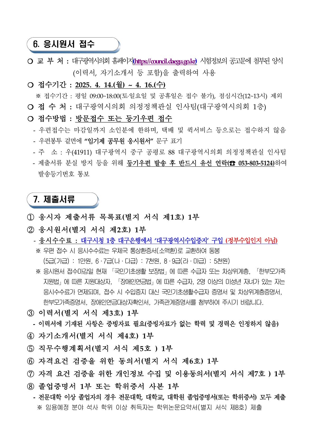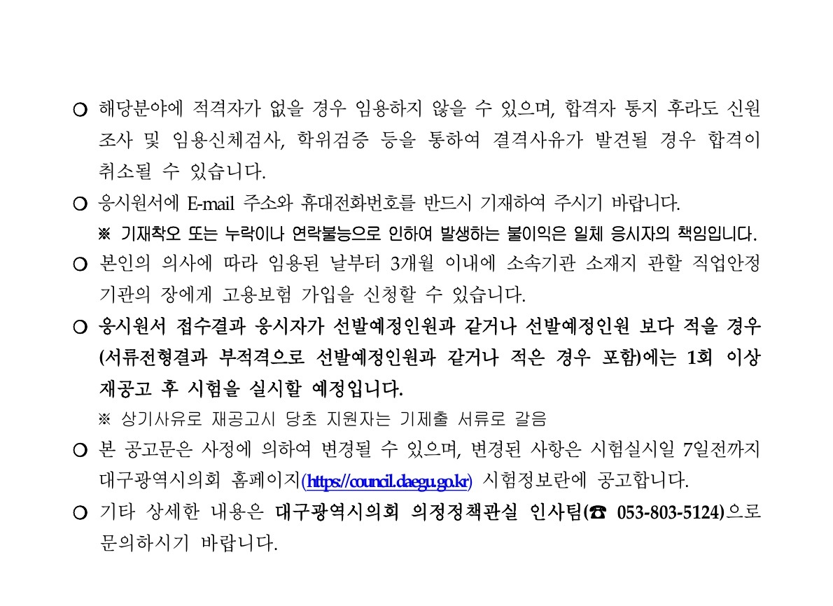[대구광역시의회] 지방임기제공무원 임용시험 공고