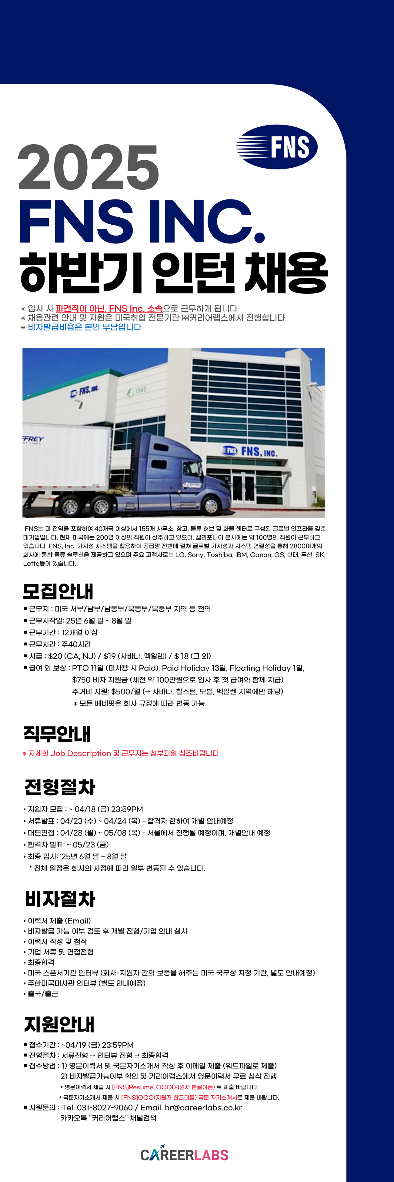 [FNS Inc.] (해외취업) 북미법인 2025년 하반기 인턴사원 채용 (커리어랩스)
