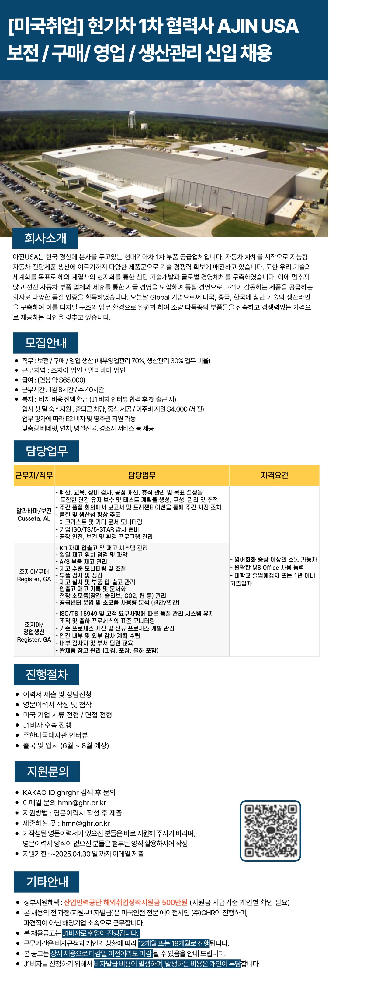 [SJG] (해외취업) 영업원가,생산관리,개발관리 신입 채용 (GHR)