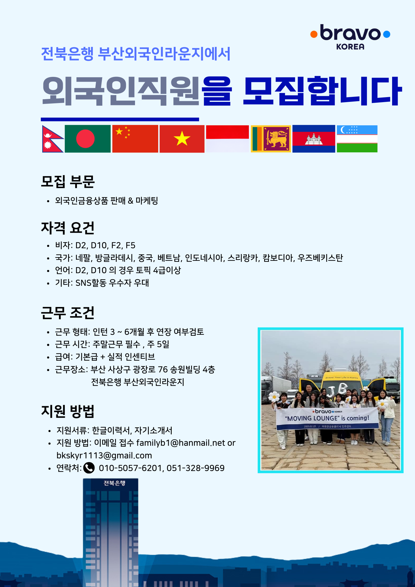[전북은행 부산외국인라운지] 외국인 직원 모집