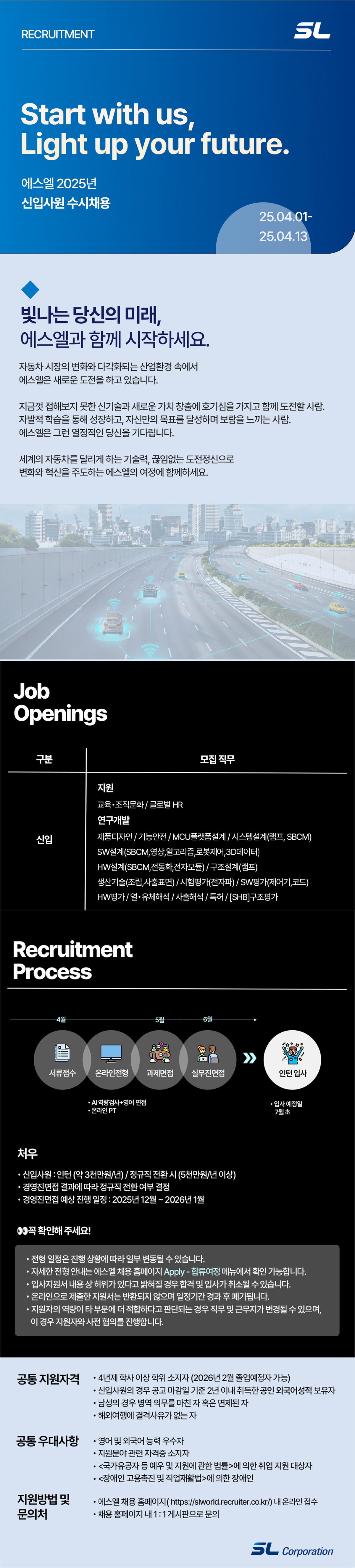 접수방법 : 에스엘그룹 채용 홈페이지에서 지원서 작성
