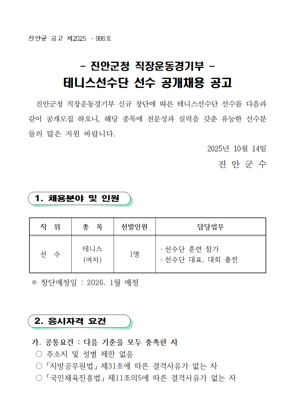 (배포용) 진안군청 직장운동경기부 테니스선수 공개채용 공고문.hwp