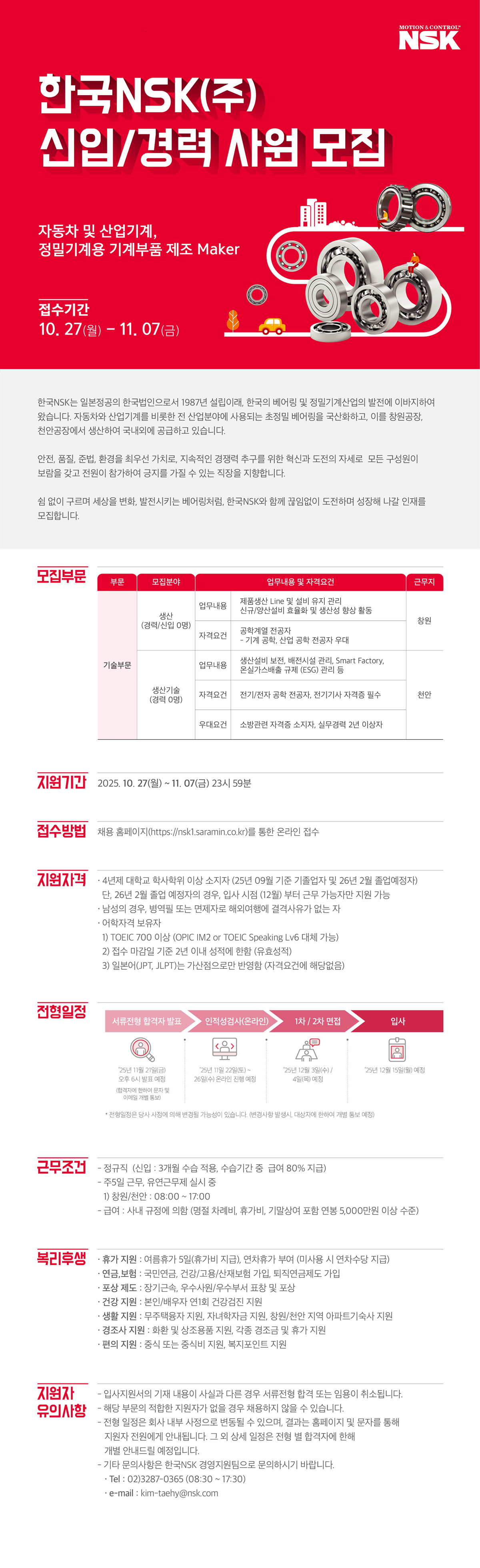 기타 문의사항은 한국NSK 경영지원팀으로 문의하시기 바랍니다.