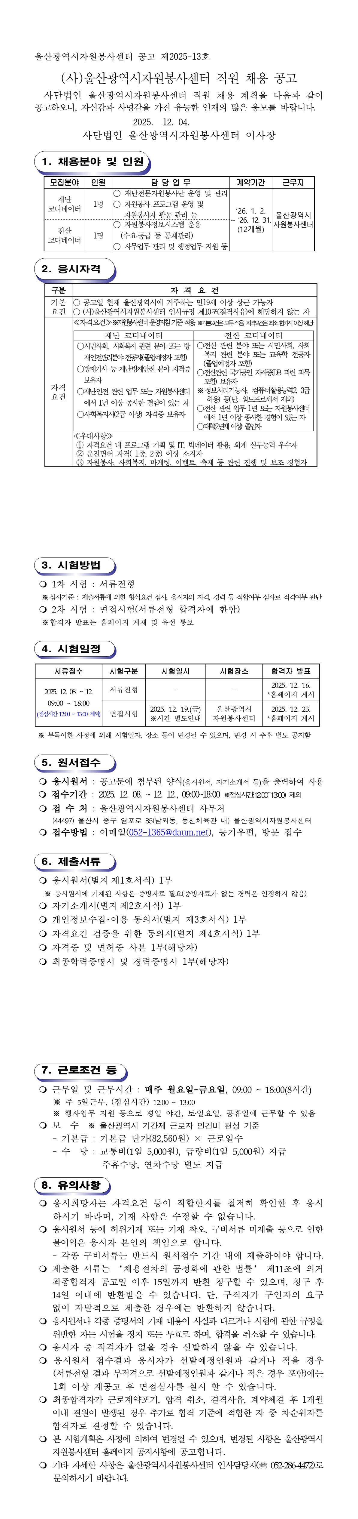 [울산광역시자원봉사센터] 재난 코디네이터, 전산 코디네이터 채용