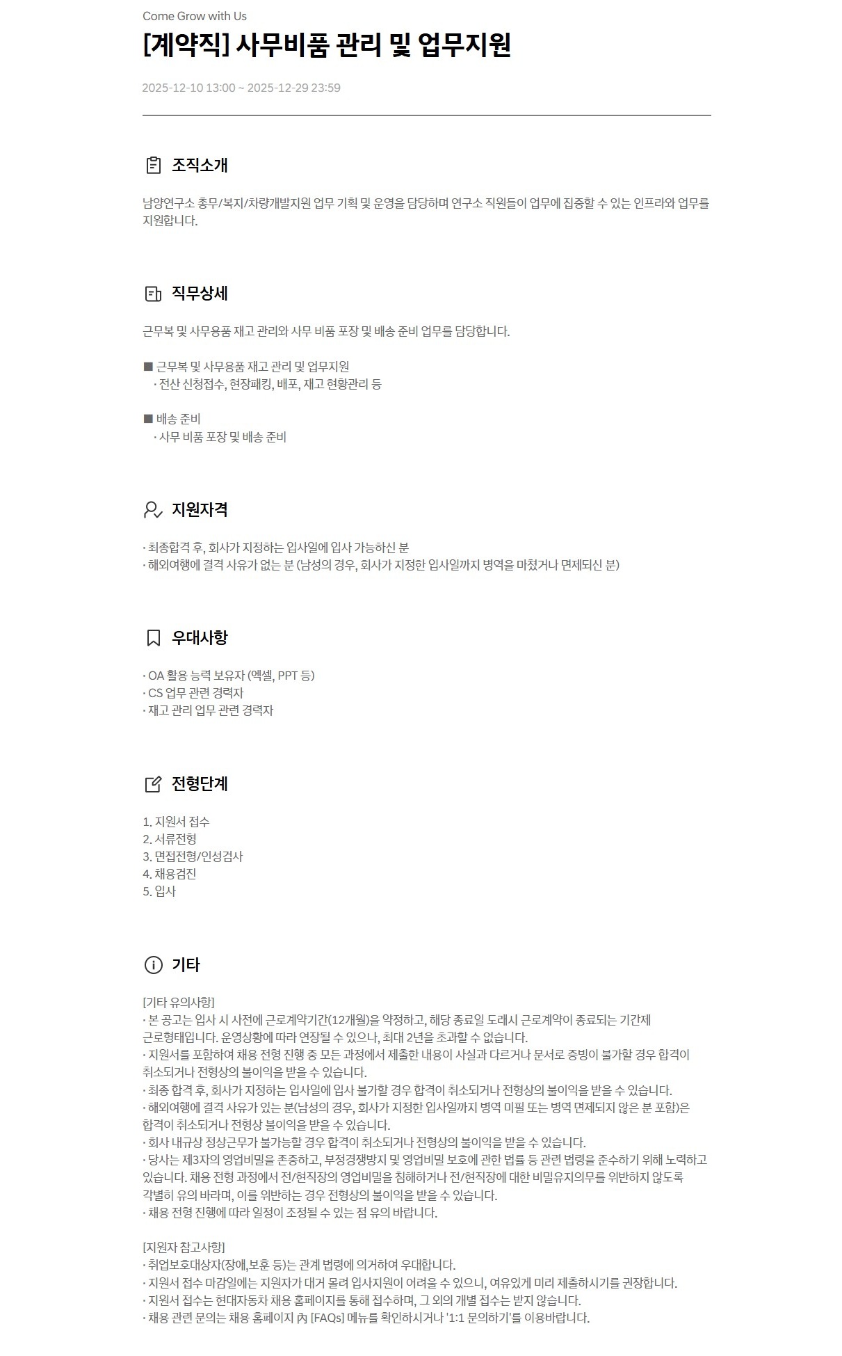 [현대자동차] 남양연구소 사무비품 관리 및 업무지원 채용 (계약직)