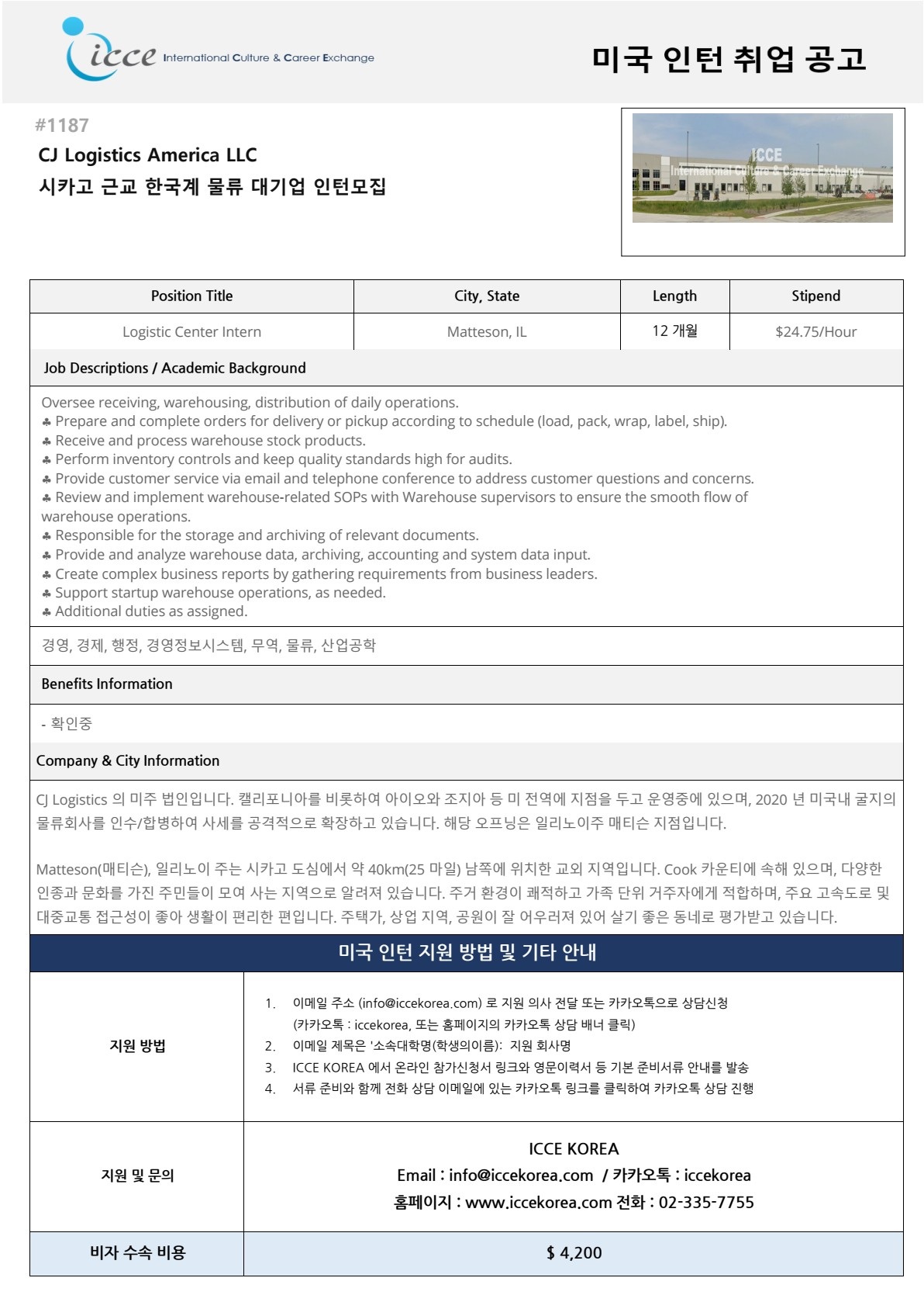 [TeaAroma, Inc] (해외취업) 음료 전문 유통회사 물류팀 / 품질관리팀 인턴 모집 (미국) (ICCE)