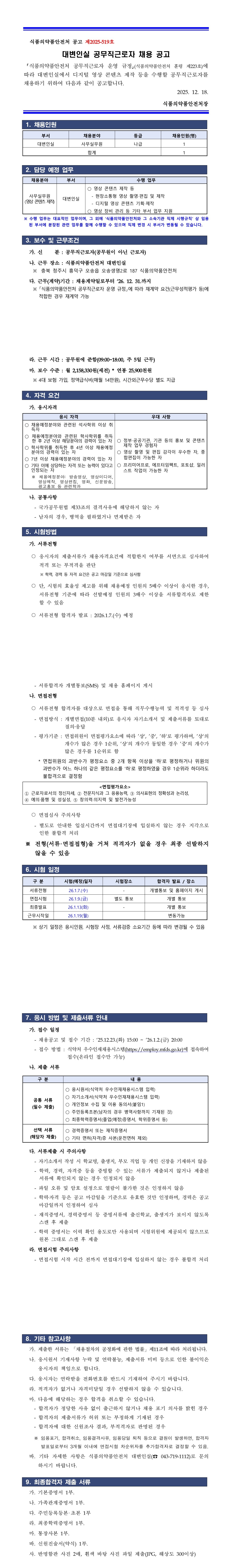 [식품의약품안전처] 2025년 대변인실 공무직 근로자 채용공고