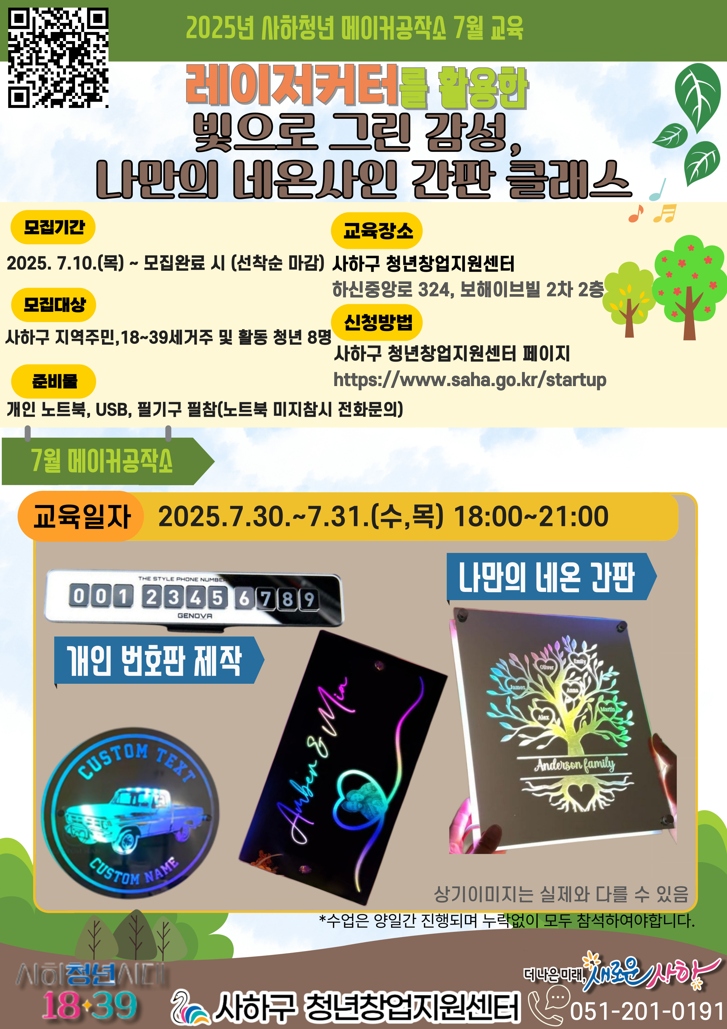 2025년 사하청년 메이커 공작소 「7월 메이커 프로그램」을 다음과 같이 운영하오니, 많은 관심 부탁드립니다.