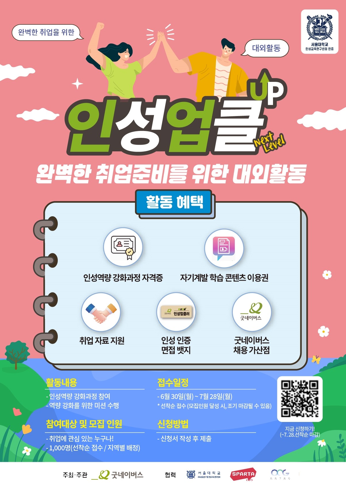 가. 활동명 : 굿네이버스 미취업청년 인성역량 강화과정 인성업클 15기 참여자 모집