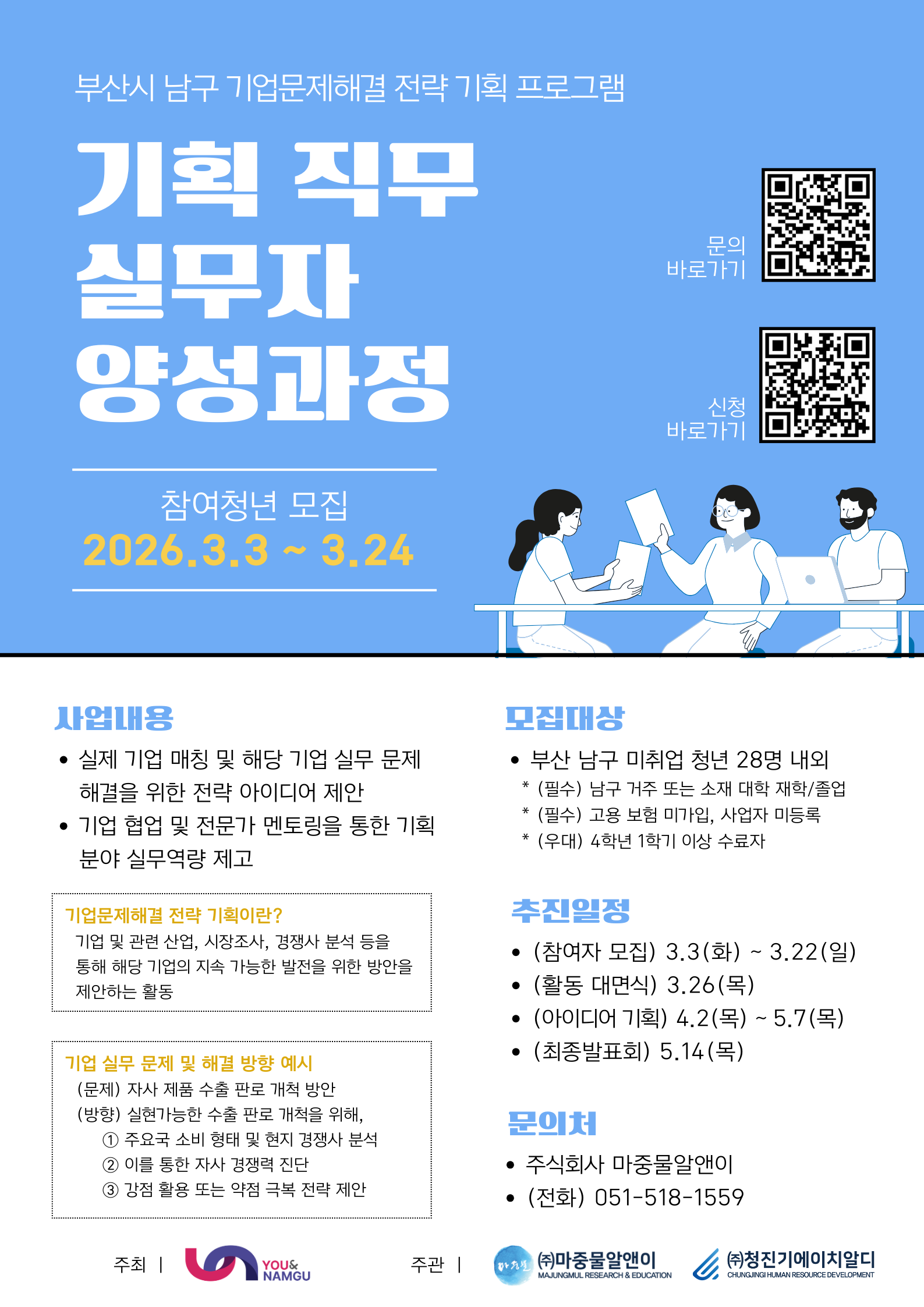 - 또는 ㈜마중물알앤이 김상원 팀장(051-518-1559)