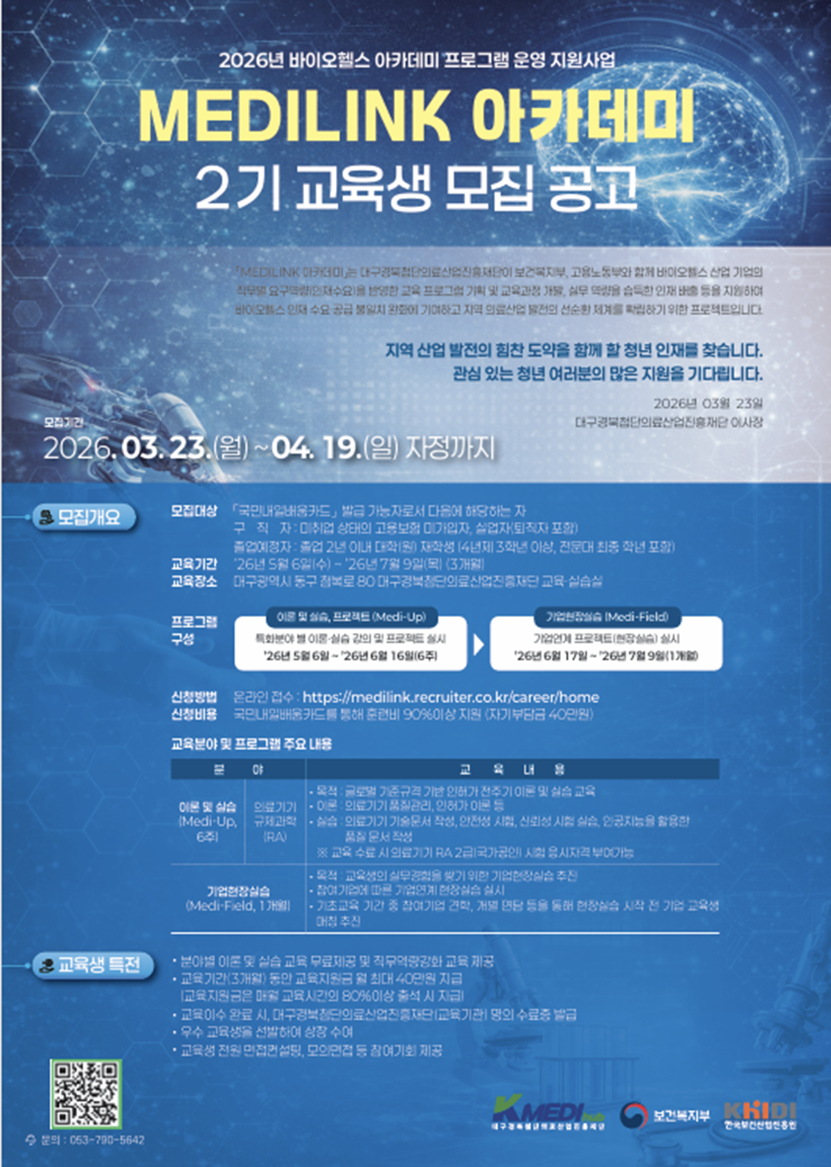 [대구경북첨단의료산업진흥재단] MEDILINK 아카데미 교육생 모집
