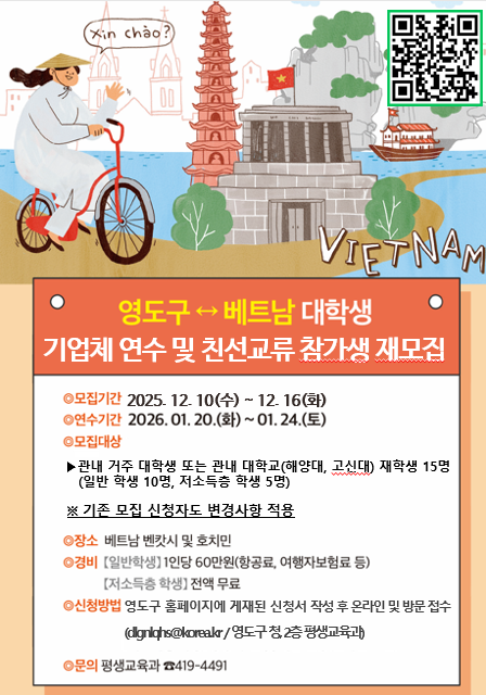 [영도구] 「제10기 영도구-베트남 대학생 기업체 연수 및 친선교류」참가생 재모집