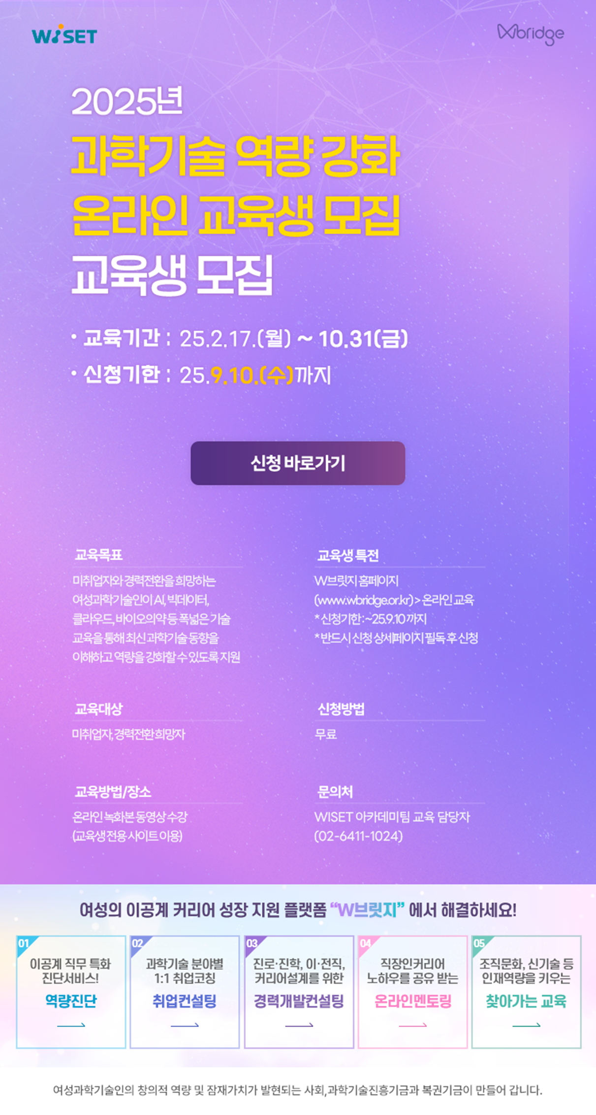 [WISET] 과학기술 역량 강화 온라인 교육생 모집(~9/10)