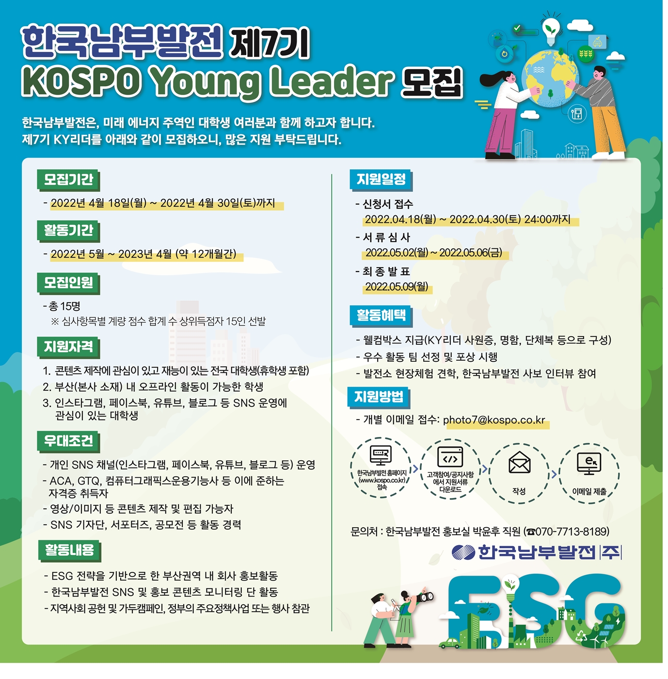 남부발전과 함께 차별화된 대학생 홍보대사를 경험해보고 싶으신 분들께서는 많은 관심 부탁드립니다.
