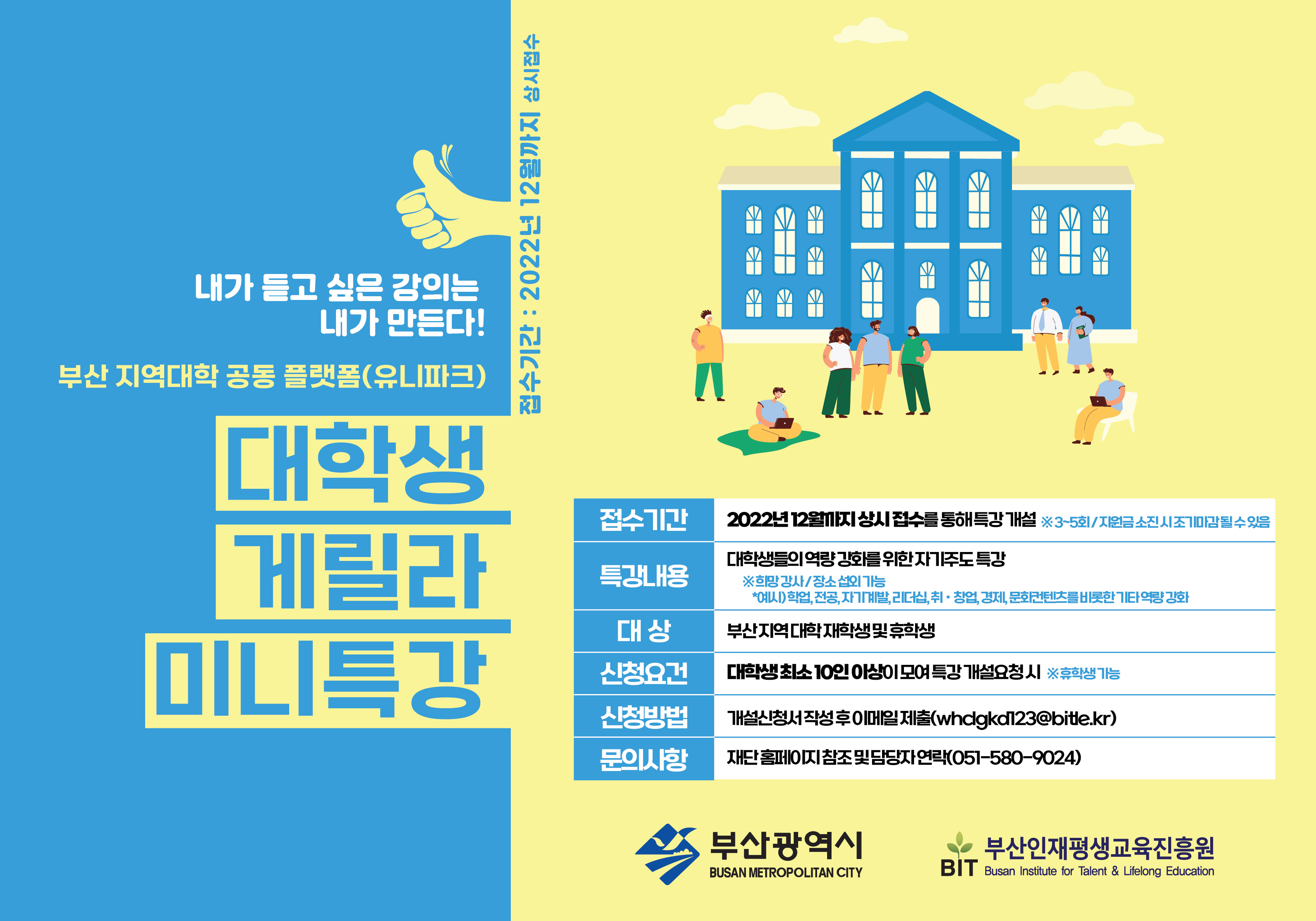 나. 신청요건: 부산지역 대학 재학생 및 휴학생(10인 이상이 모여 개설 요청)