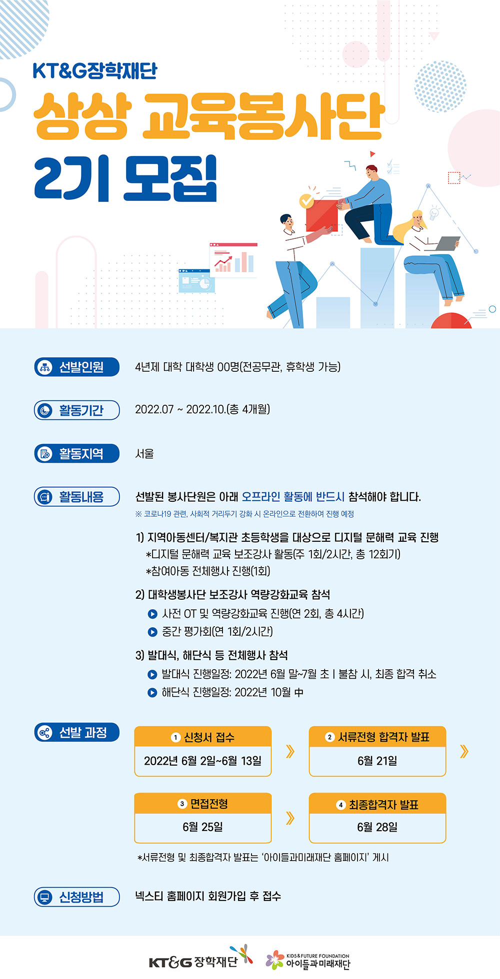 *서류전형 및 최종합격자 발표는 '아이들과미래재단 홈페이지' 게시