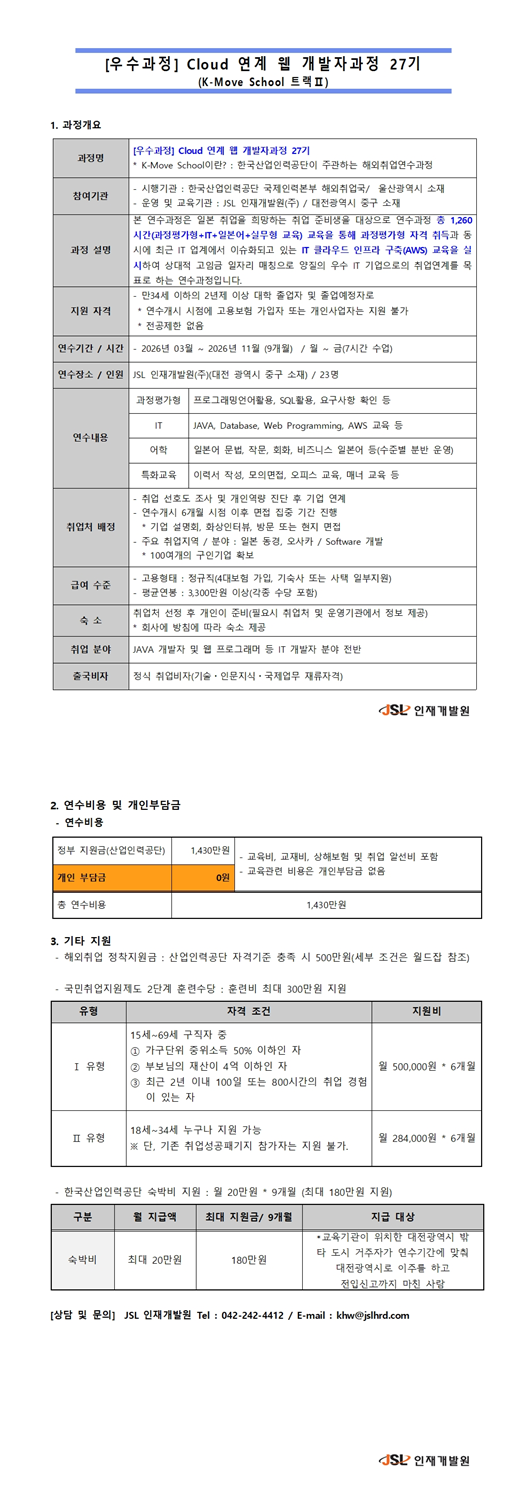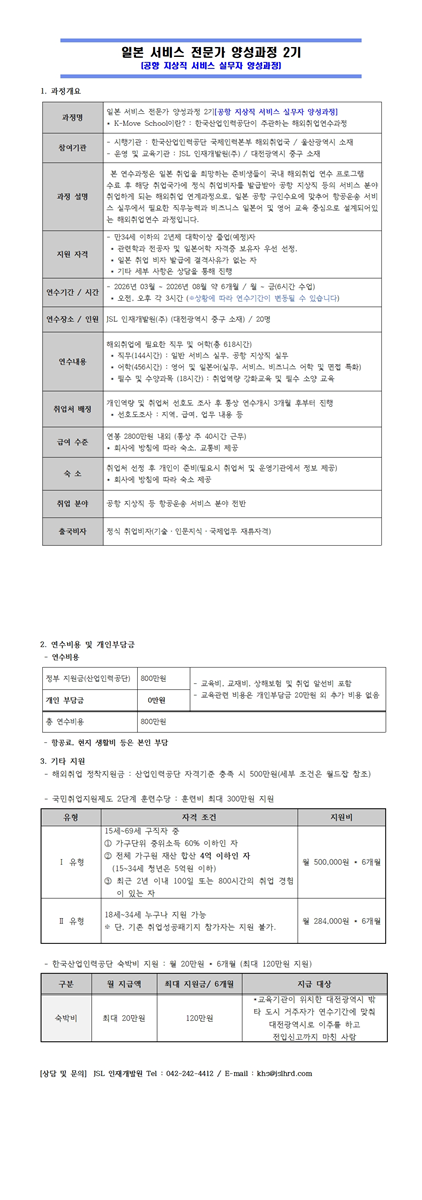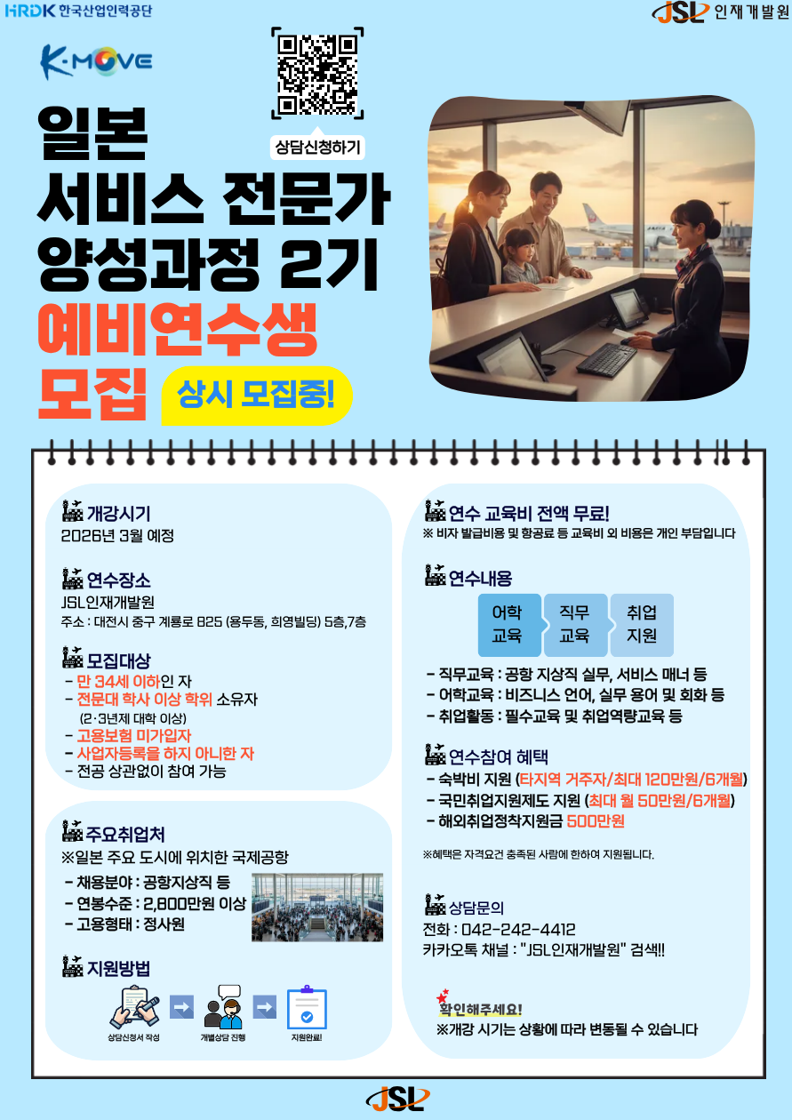 제목 [JSL인재개발원] 2026년 K-MOVE 스쿨 해외취업 연수과정(IT/서비스) 연수생 모집 안내 및 해외 일경험 프로그램 홍보