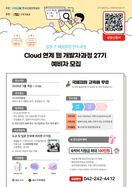 참가혜택 연수비 전액 무료과정평가형 정보처리 산업기사 자격증 취득일본 IT기업 취업 연계숙박비 지원금 등