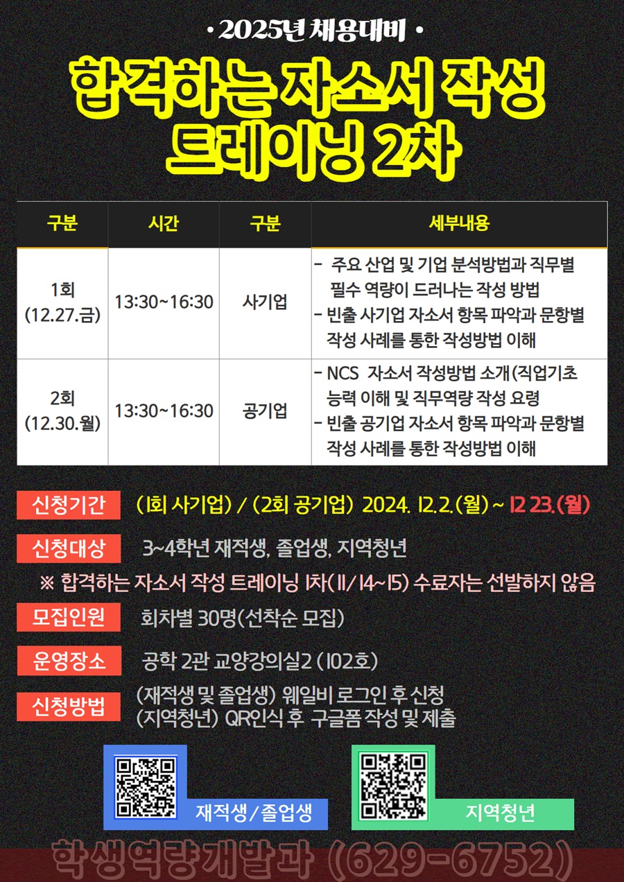 ■ 교육기간 : 2024.12.27.(금) & 12.30.(월), 13:30~16:30