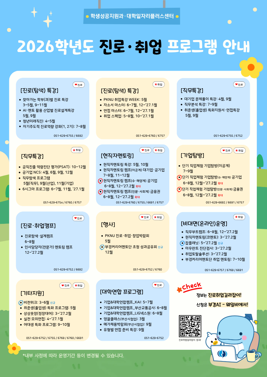 이번 2026학년도 연간 진로·취업프로그램 안내를 아래와 같이 안내드립니다.