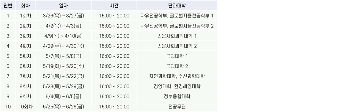 다른 단과대학 회차 신청 가능