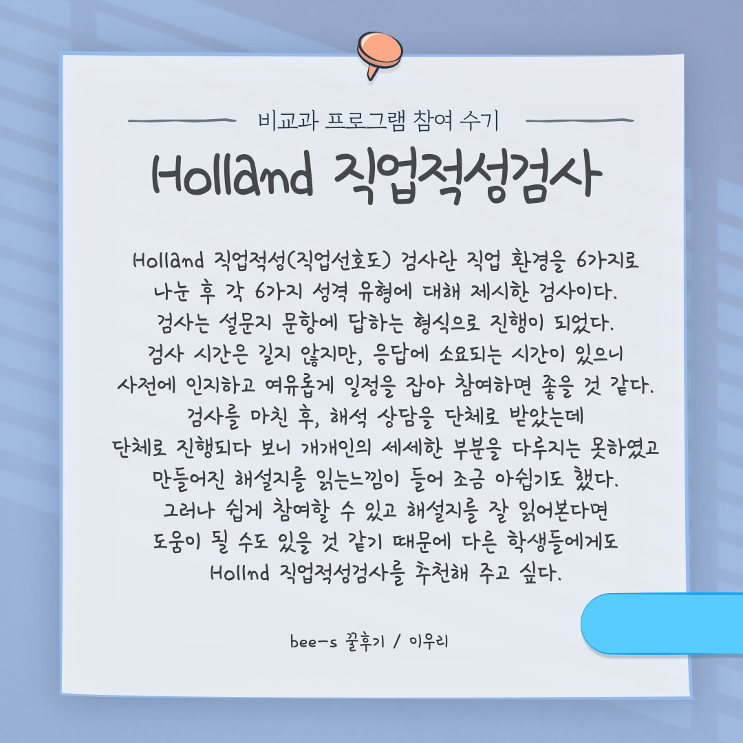 [꿀후기]_진로심리상담조_이우리_Holland 직업적성검사