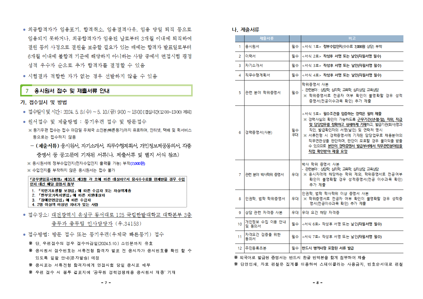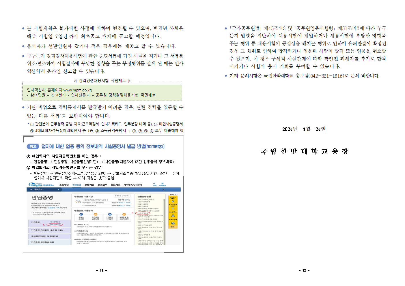[국립한밭대학교] 국가공무원(일반임기제, 전문경력관 나군) 경력경쟁채용 공고