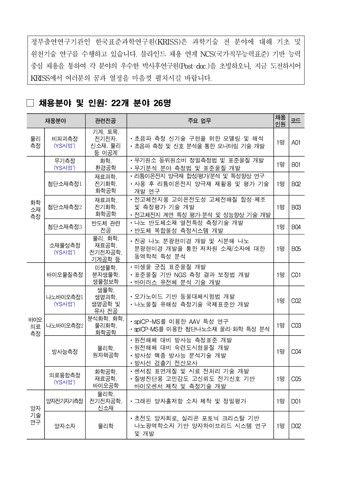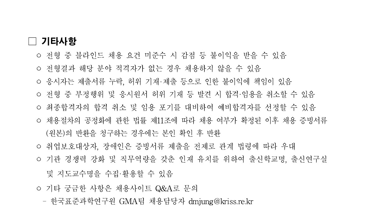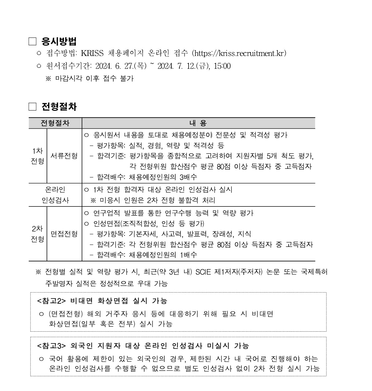 [한국표준과학연구원] 2024년 2차 Post-doc. 공개채용 공고