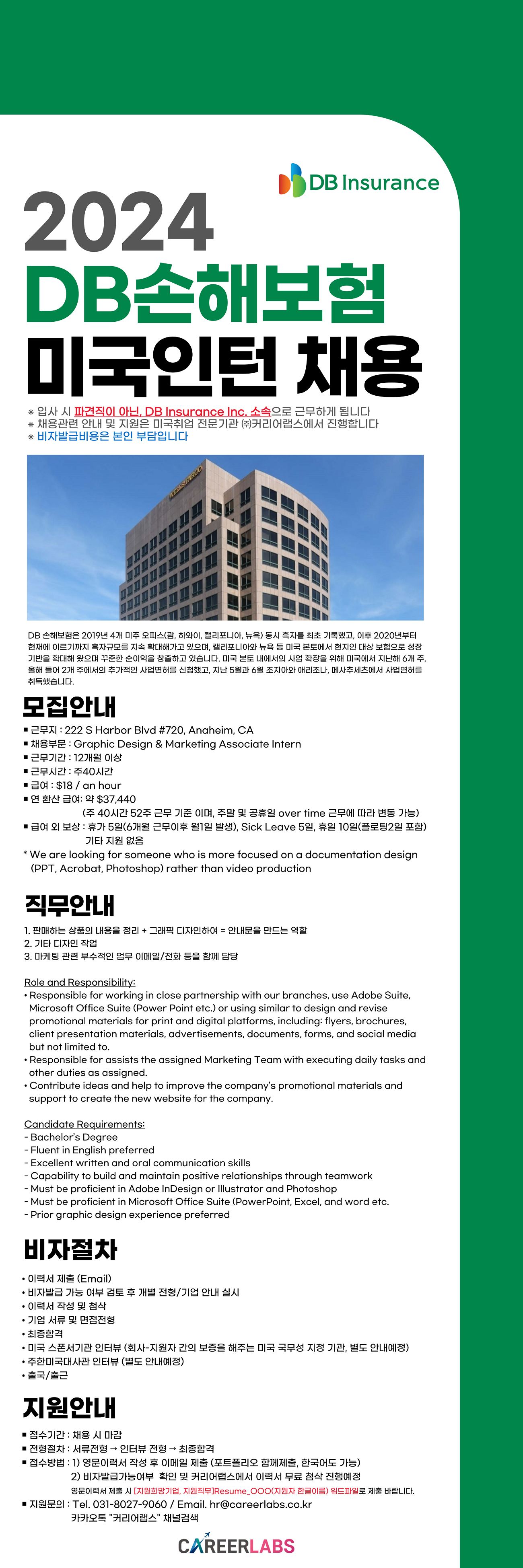 [DB손해보험] (해외취업) 캘리포니아법인 그래픽&마케팅 부문 인턴 채용 (커리어랩스)