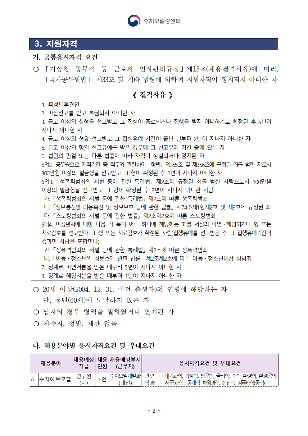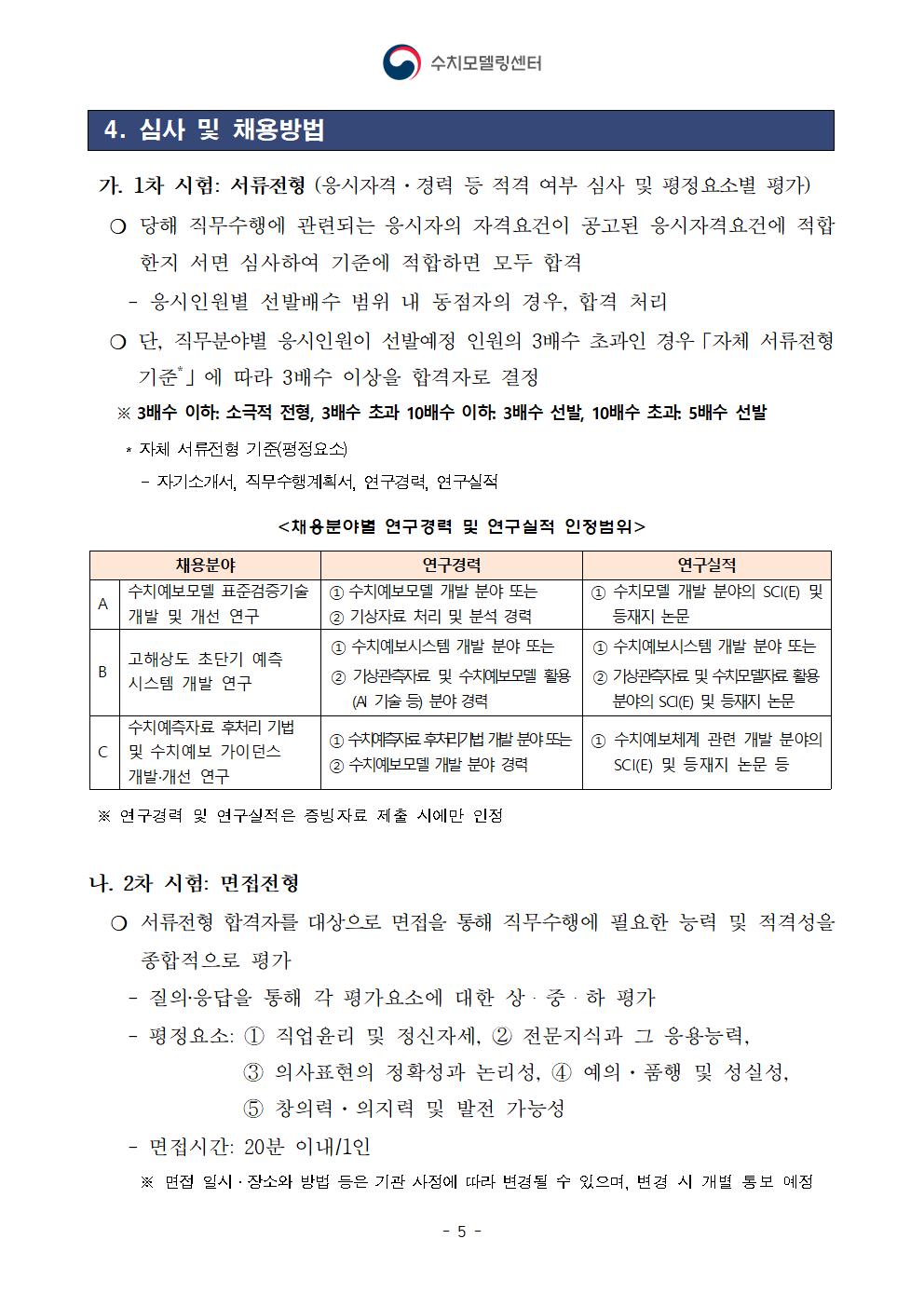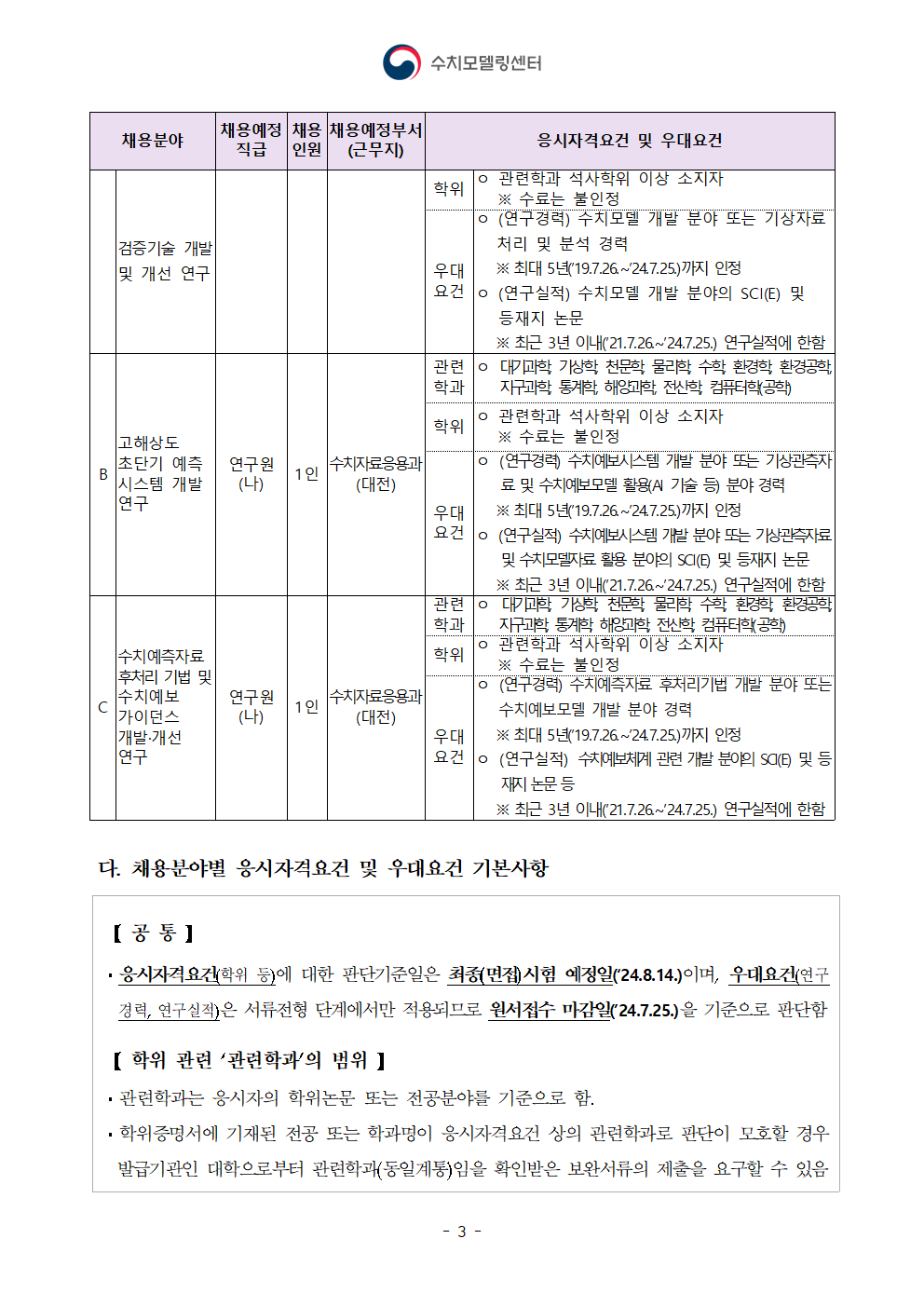 [수치모델링센터] 2024년 제2회 수치모델링센터 공무직 근로자 채용 공고